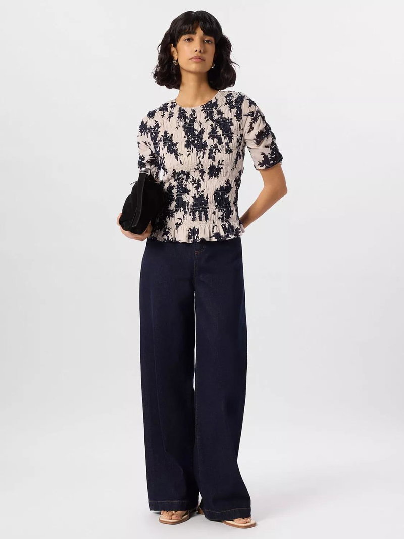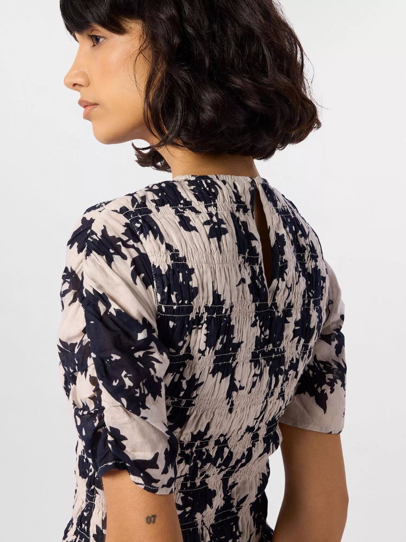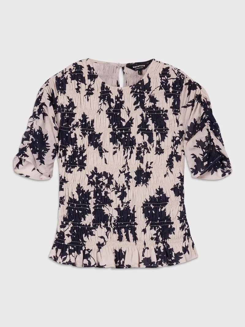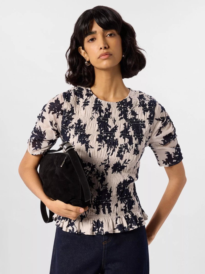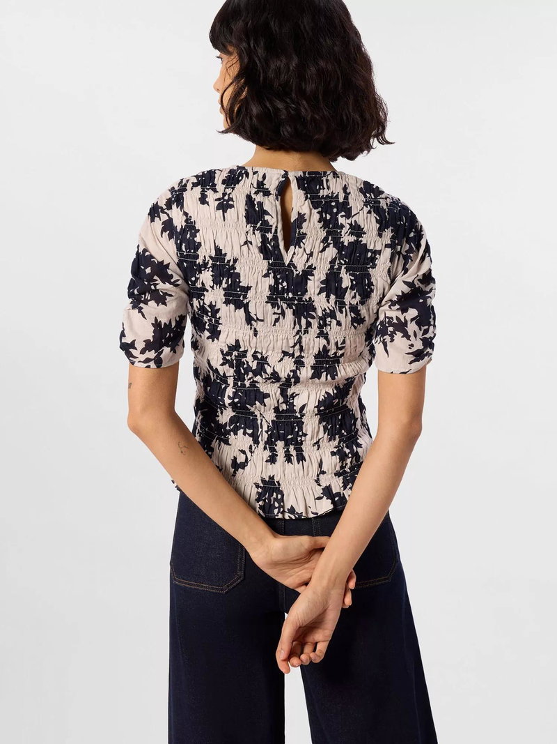 Lift your daytime looks with this textured floral blouse in soft cotton. The round neck, shirred detail and short sleeves keep you comfortable while subtle details add playful character.
