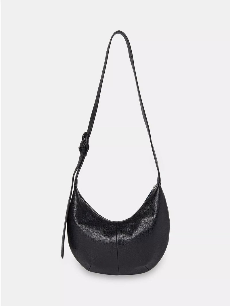 This small leather curved crossbody bag keeps your essentials close and organised with a comfortable adjustable strap and secure zip fastening. Perfect for helping you move freely through your day, hands-free and ready for anything.