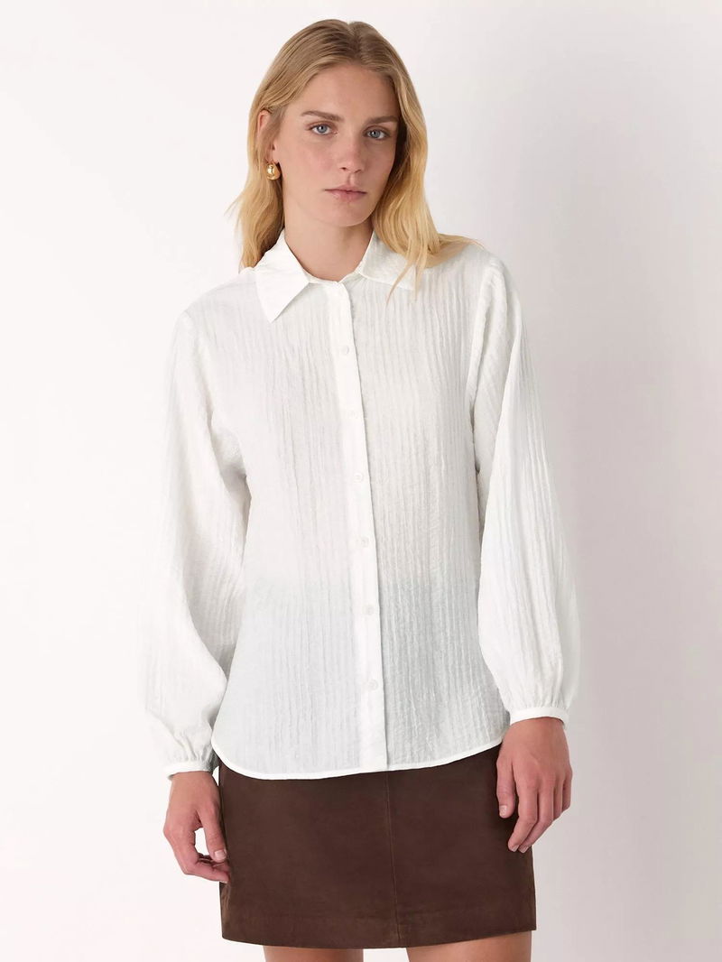 Textured Relaxed Fit Shirt Containing LENZING™ ECOVERO™ Viscose, White