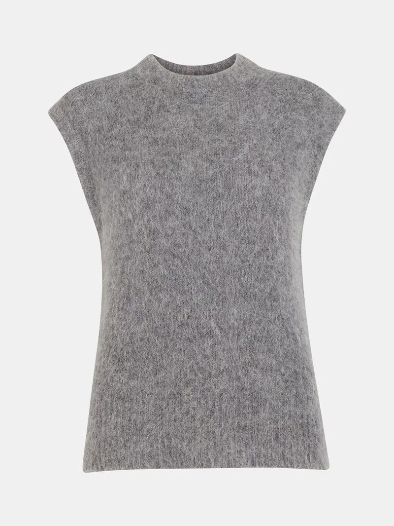 Wool Blend Cap Sleeve Crew Neck Knit Tank