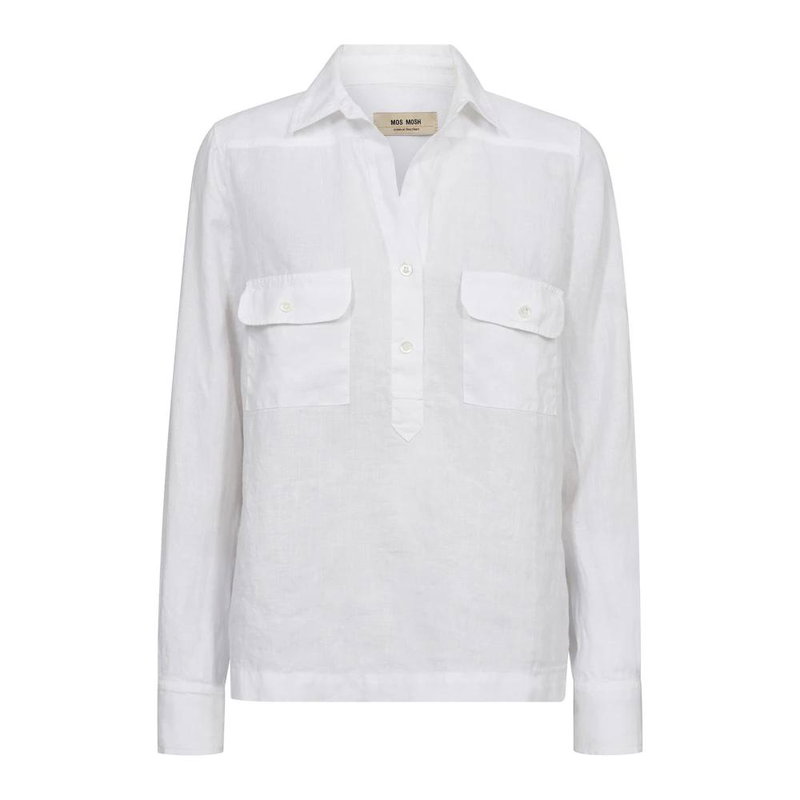 Stay cool and stylish in this simple linen blouse from Mos Mosh, designed in a lightweight boxy fit. It features workwear-inspired front pockets and a popover button closure. Pair it with high-waisted jeans or denim shorts on a warm spring day.
