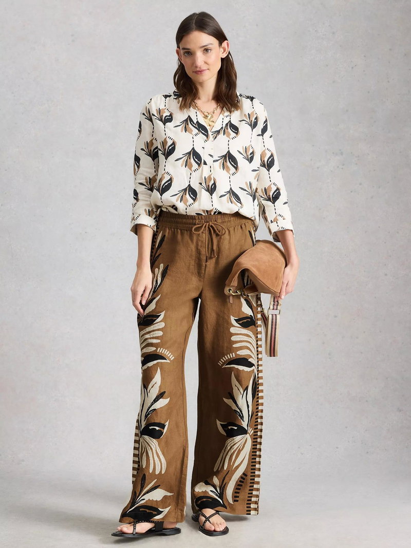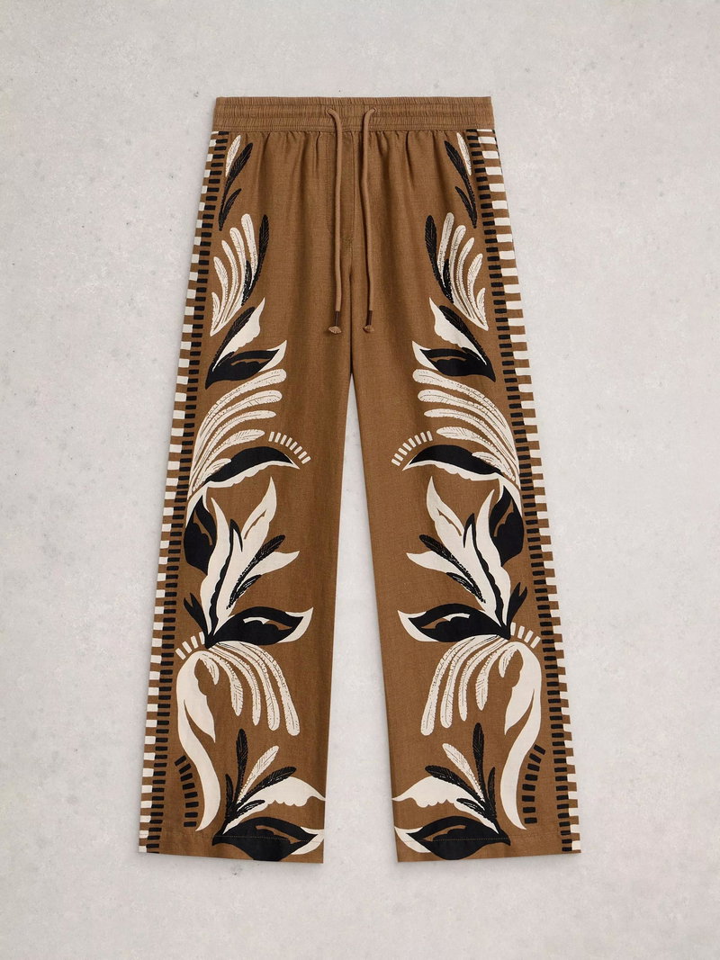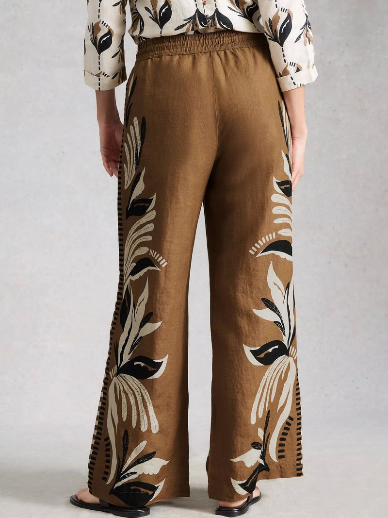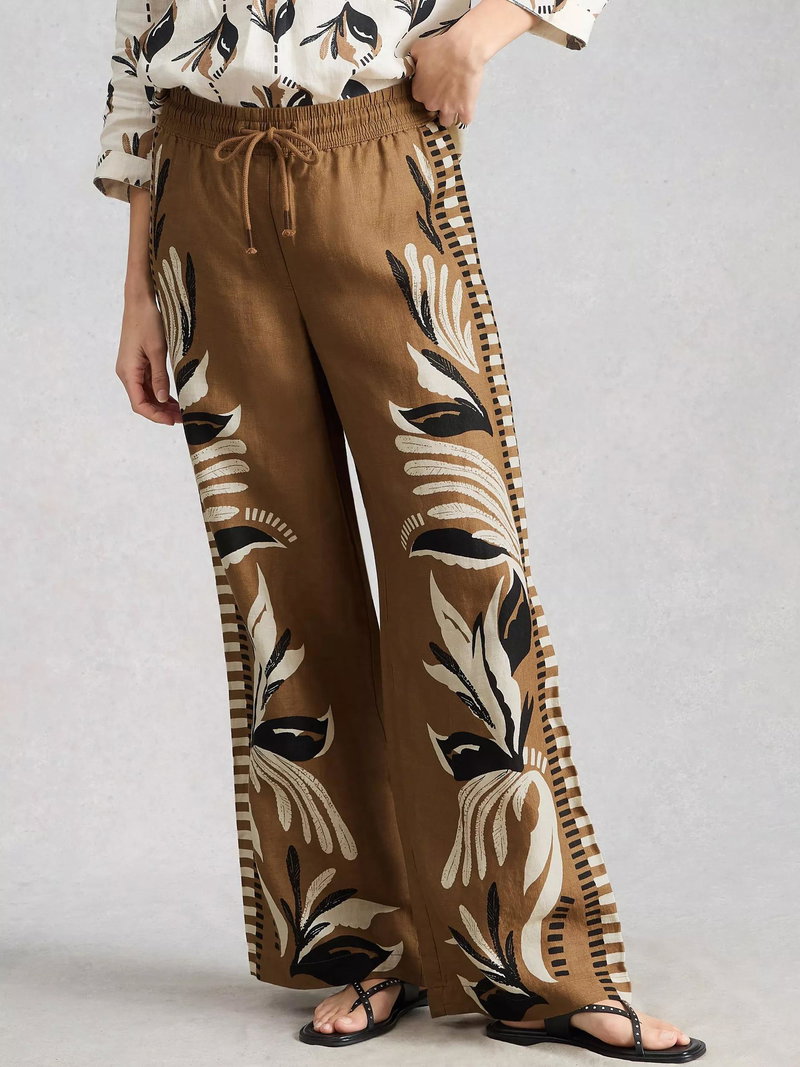 Ally Wide Leg Linen Trousers, Brown
