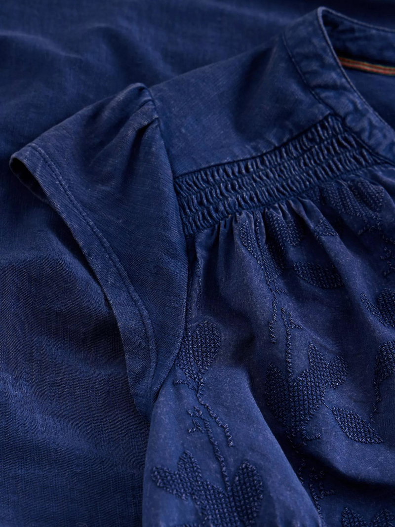 Amelia Floral Embroidered Blouse, Blue Indigo