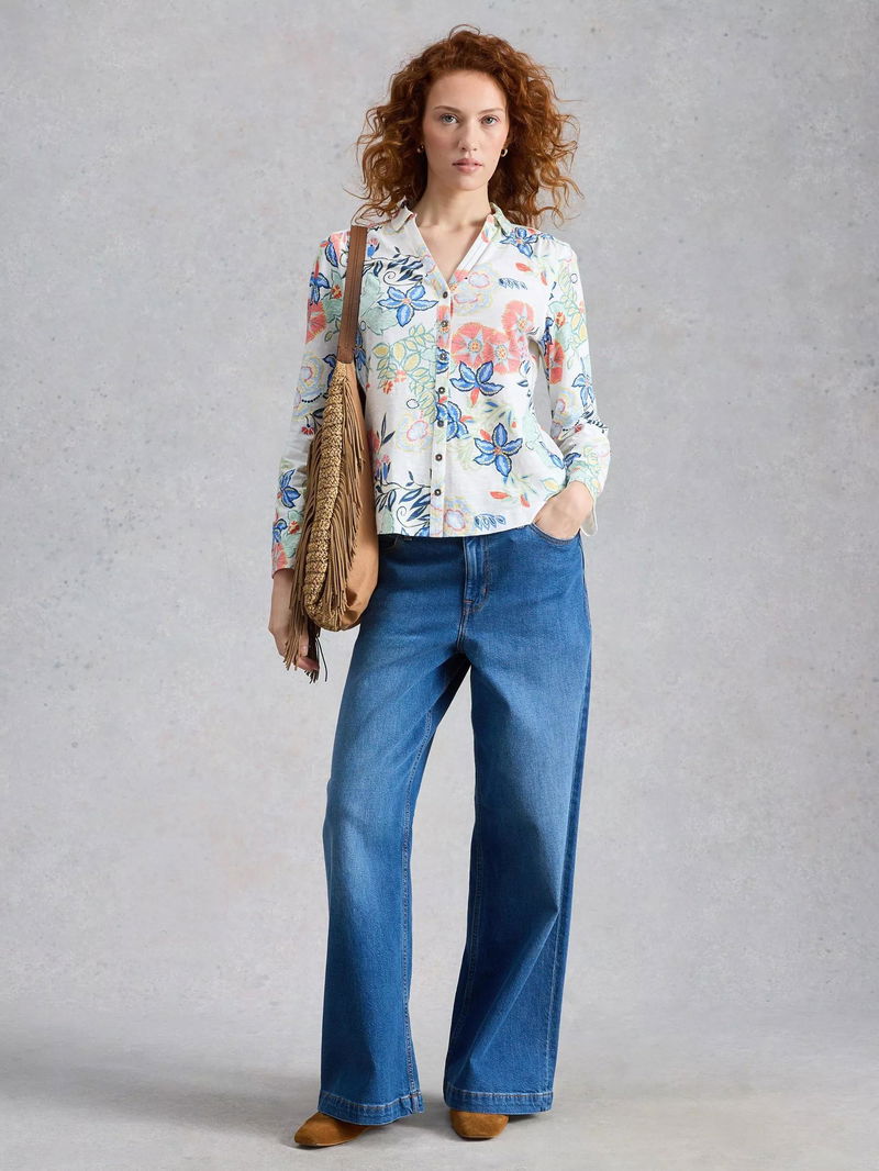 Annie Floral Long Sleeve Shirt, White/Multi