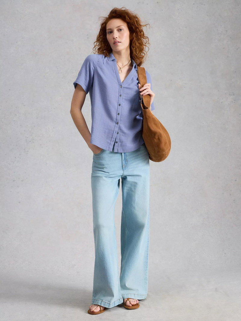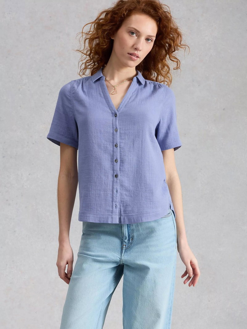 Annie Short Sleeve V-Neck Shirt, Blue