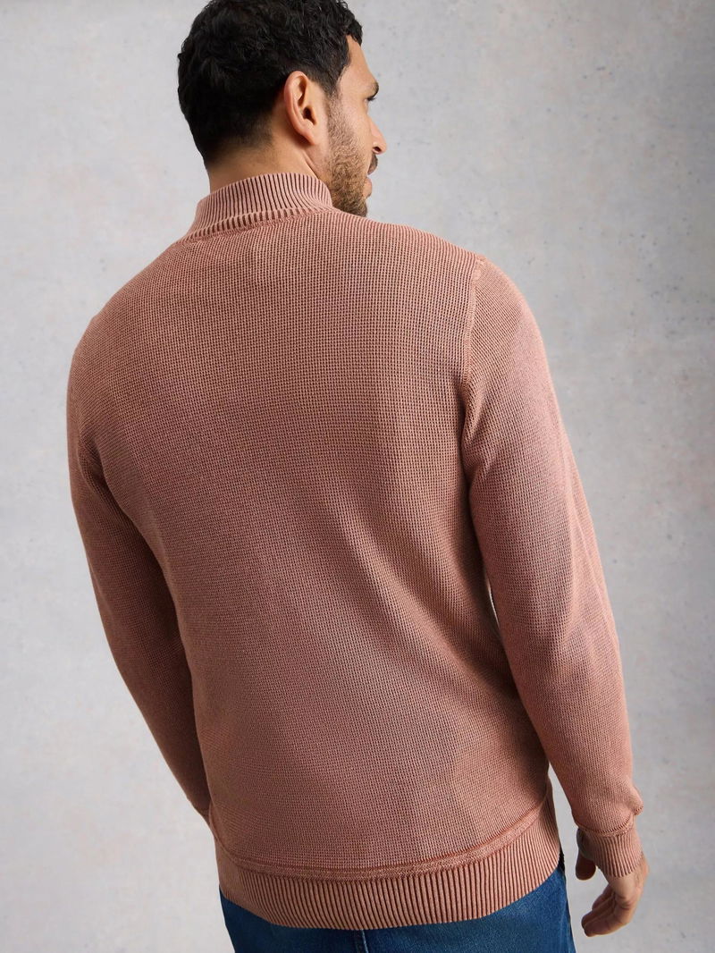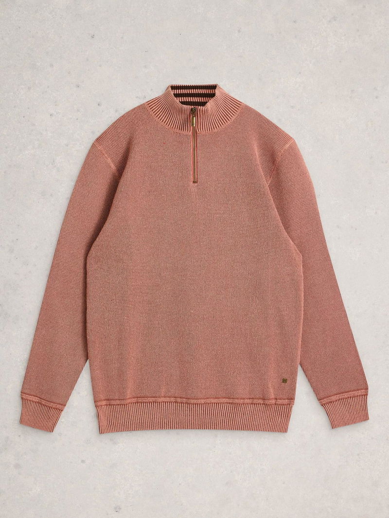 Attadale Cotton Quarter-Zip Jumper, Dark Pink
