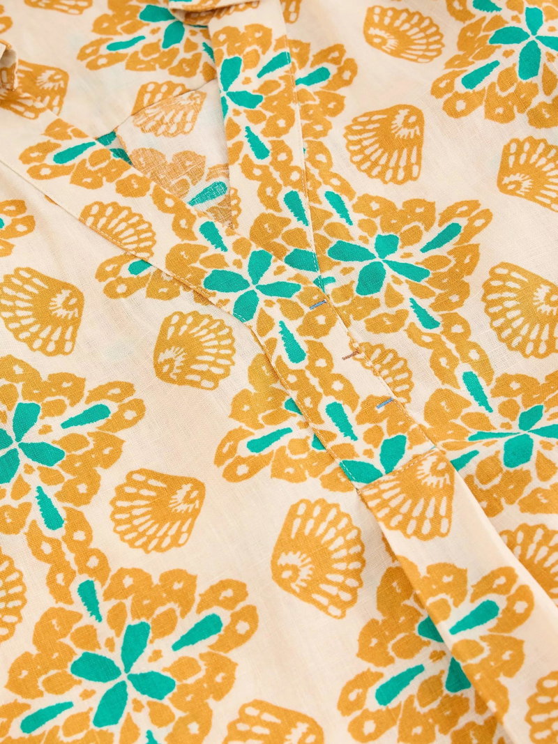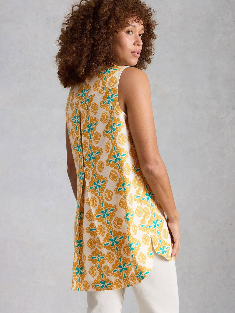 Bianca Abstract Floral Pure Linen Tunic Top, Yellow/Multi