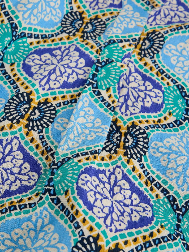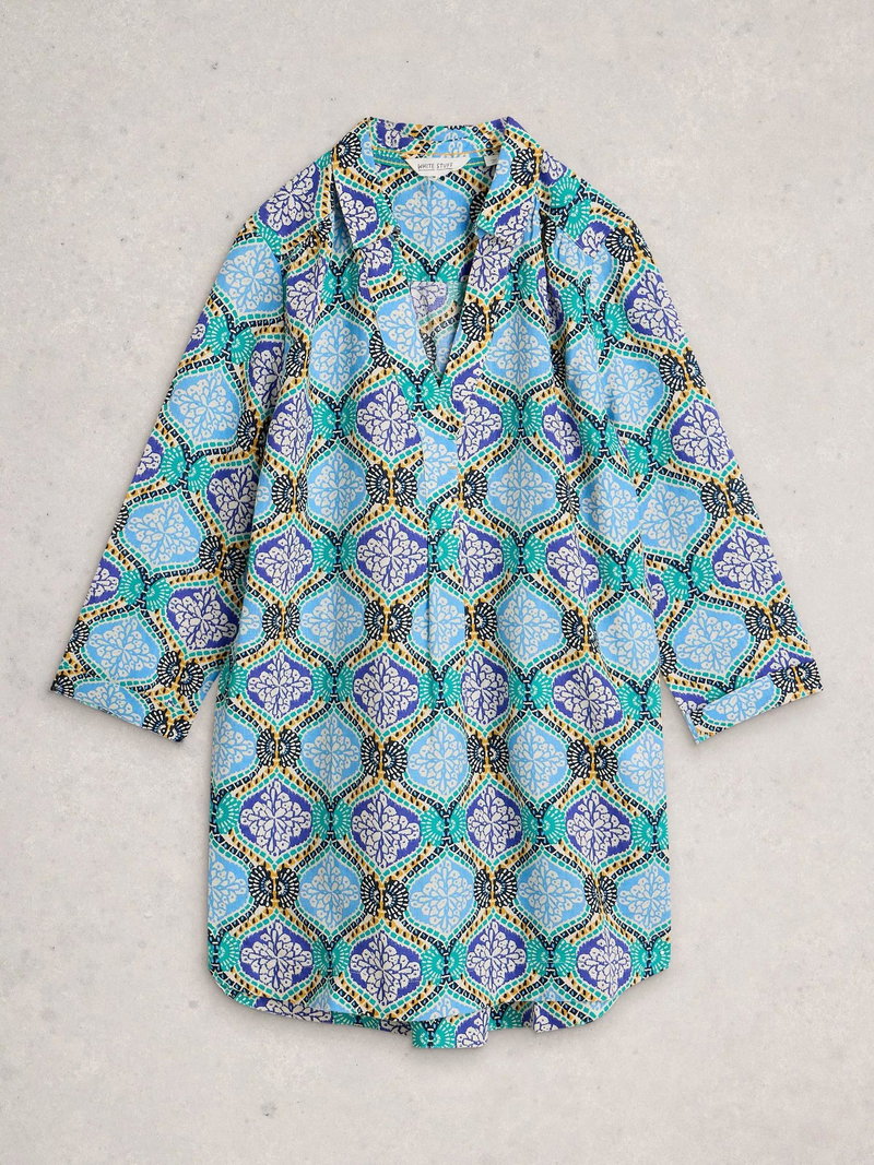 Bianca Linen Abstract Tunic Top, Blue/Multi