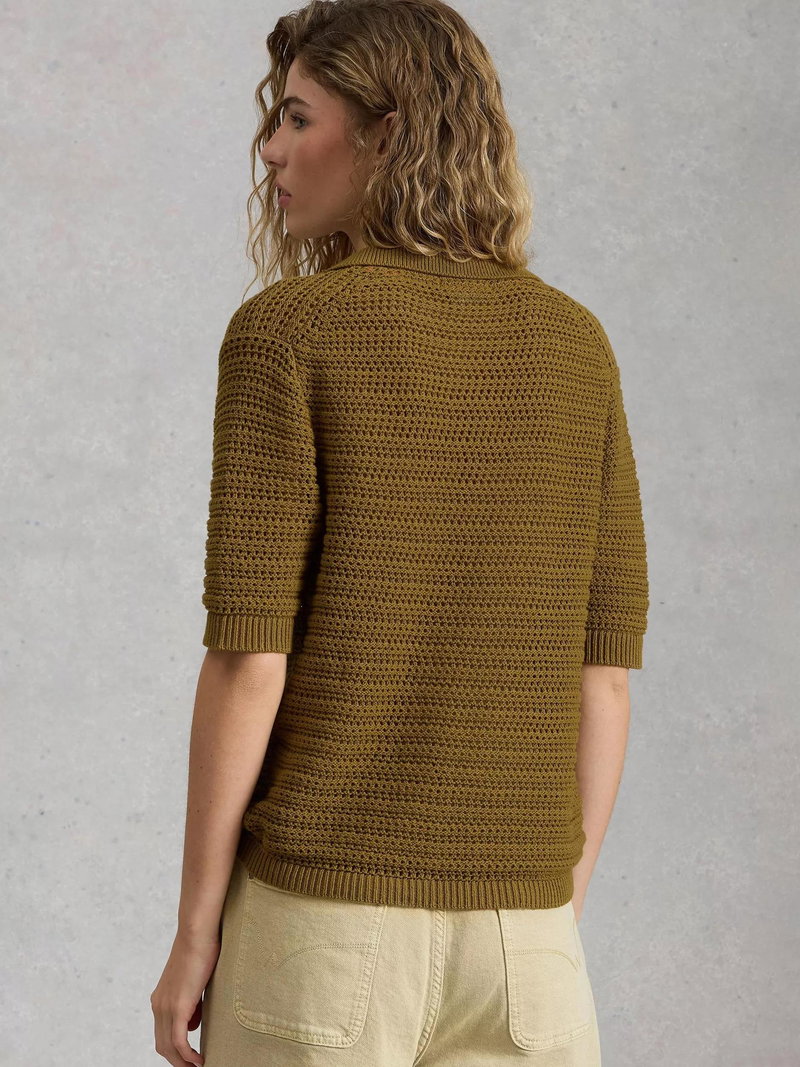 This short sleeve crochet polo shirt keeps you comfortable all day, blending soft cotton with a smart collar and textured finish. One for your summer lineup.