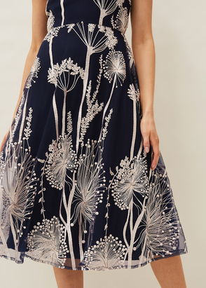 Frances Floral V-Neck Dress, Navy/Multi