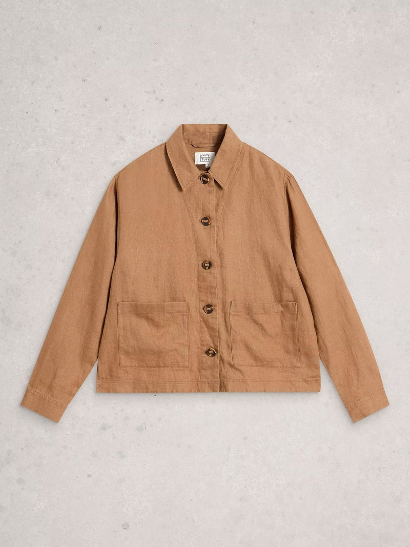 This jacket by White Stuff is detailed with a collar and front patch pockets and is made from pure linen for a light and natural texture.