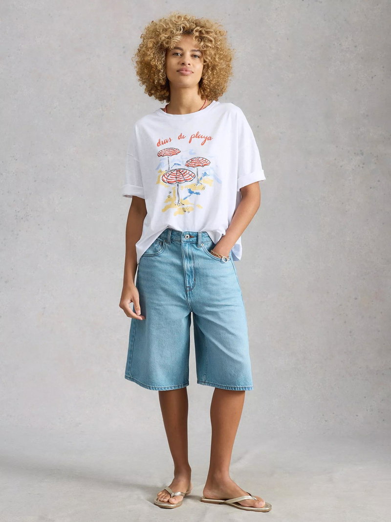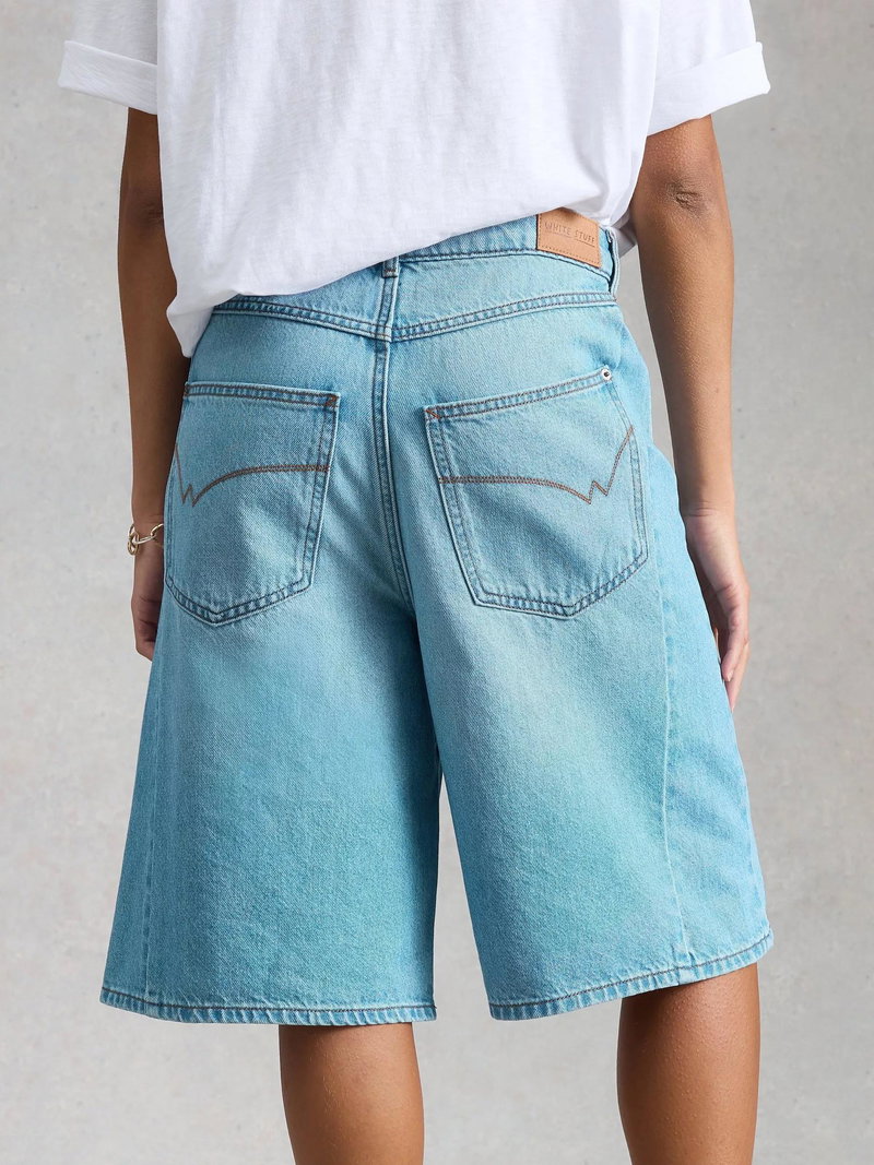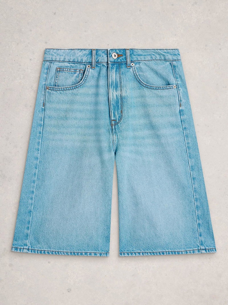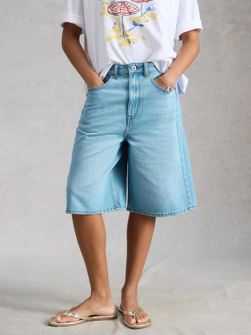Denim shorts cut with a high rise for all-day ease, made from a soft cotton blend that stands up to warm, sunny days.