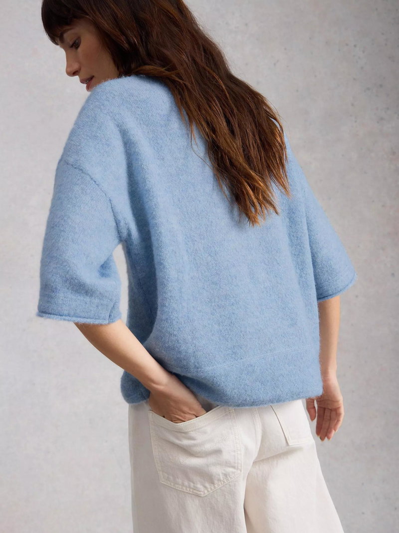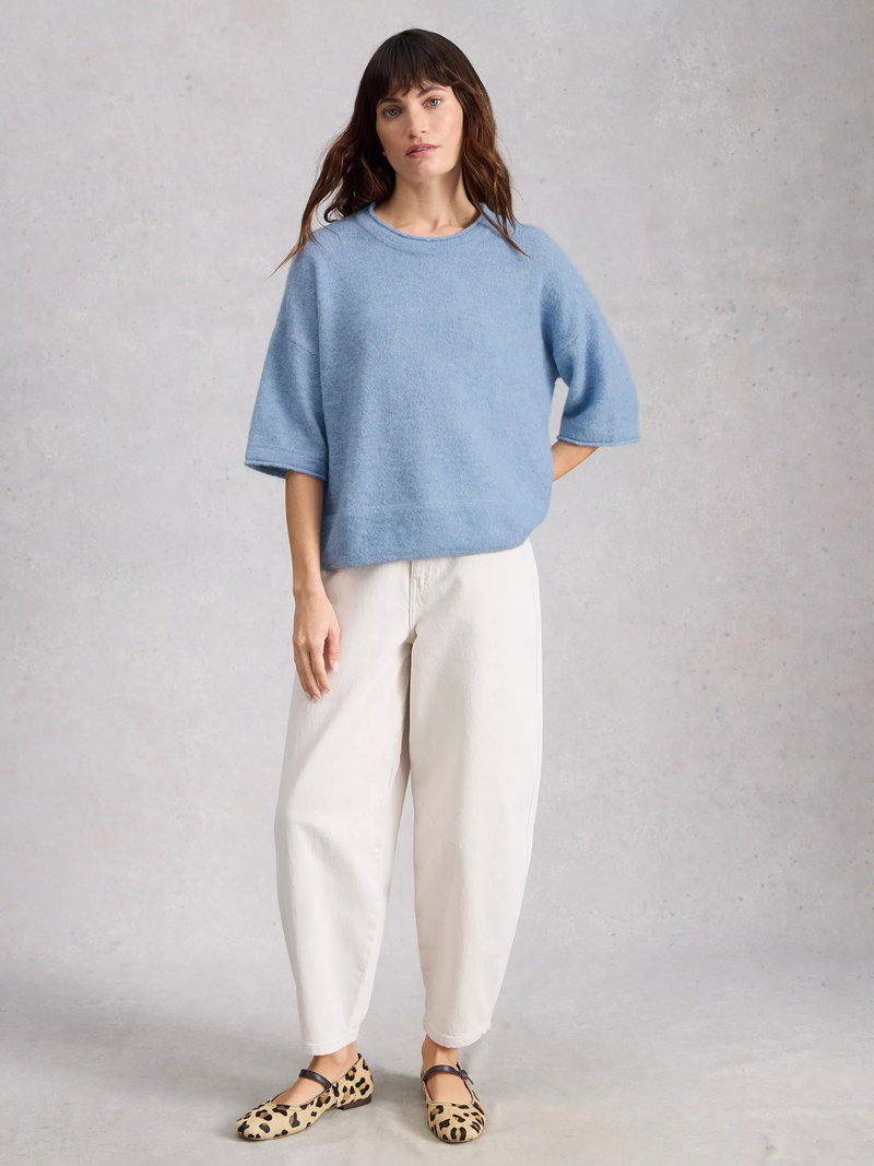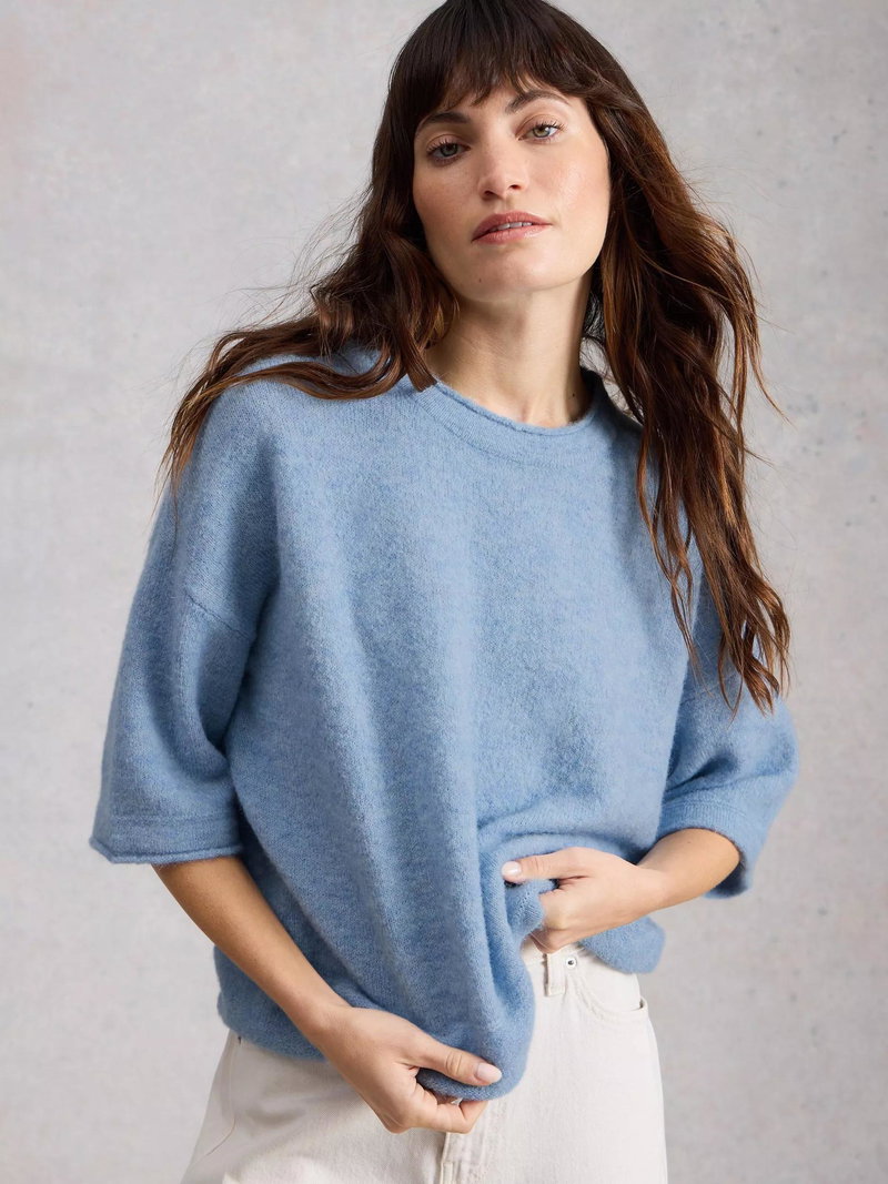 An everyday T-shirt by White Stuff, blended with wool. Featuring a boat neck and elbow length sleeves, its plain colour design goes with everything. Everyday ease with a stylish twist.