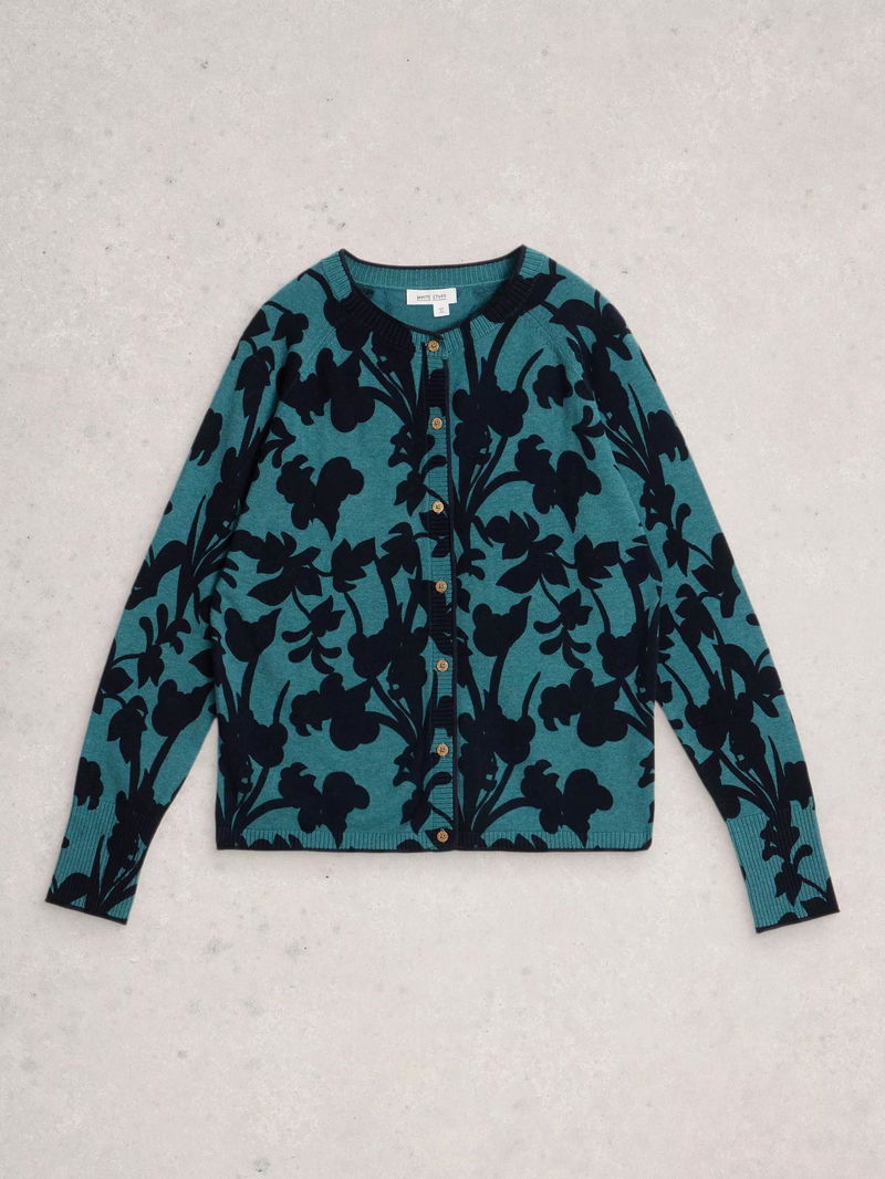 Lulu Leaves Cardigan, Blue/Multi