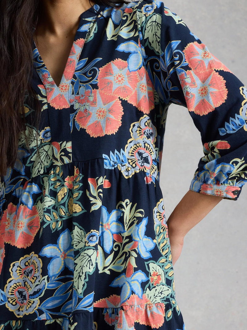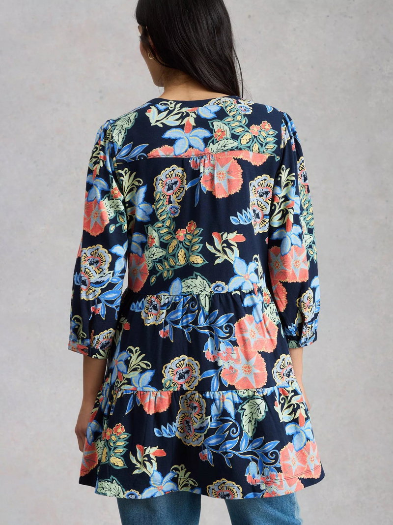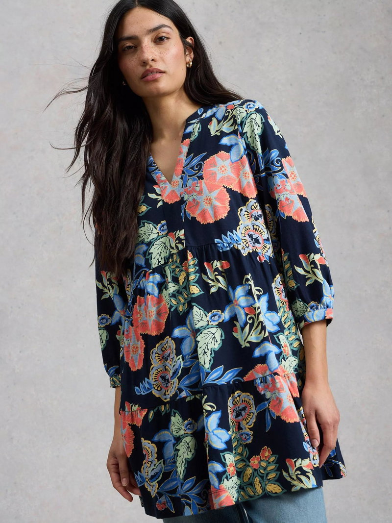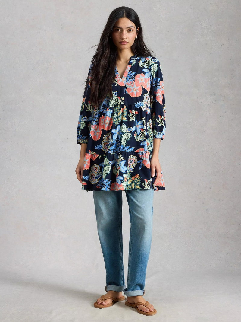 Marta Floral V-Neck Tunic, Navy/Multi