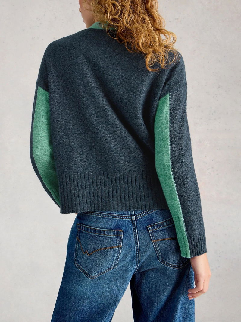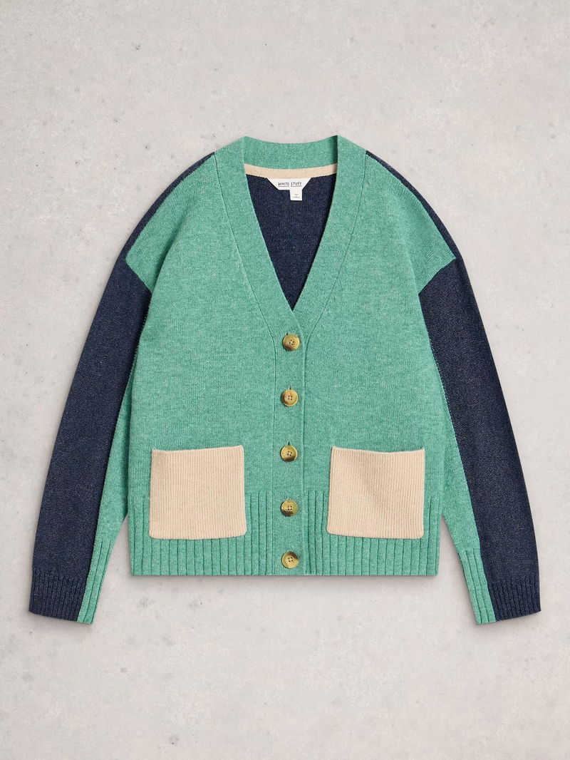 Mary Colour Block Wool Blend Cardigan, Green/Multi