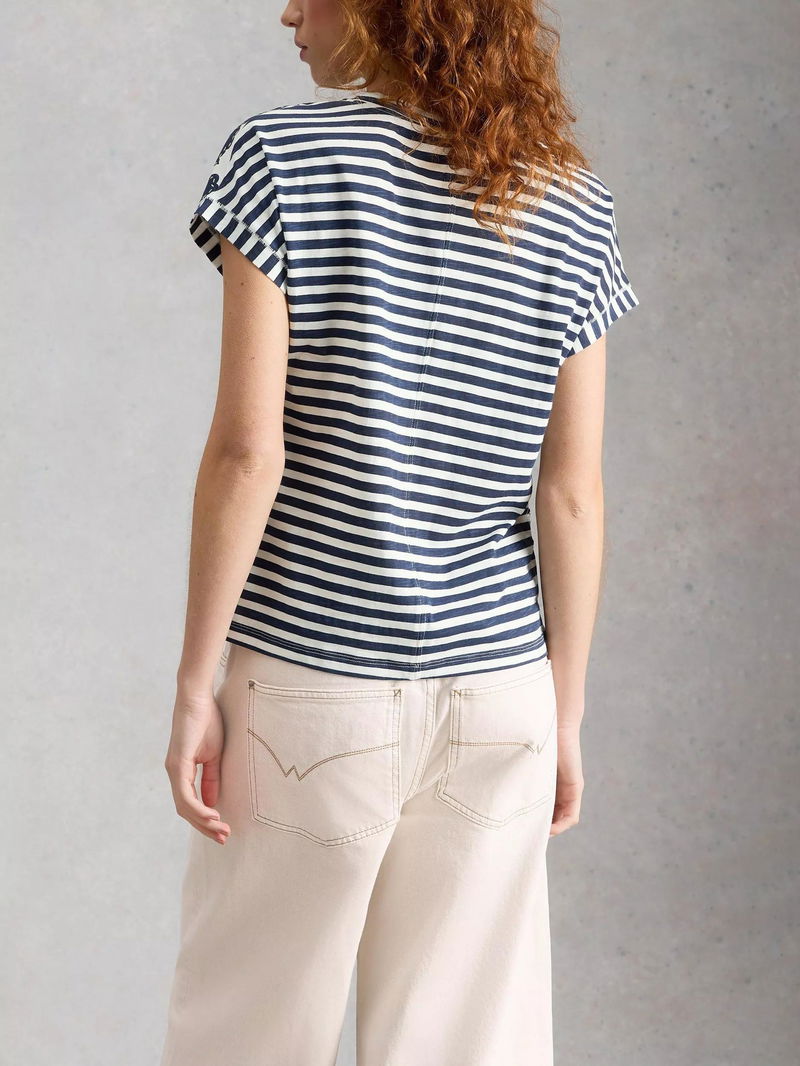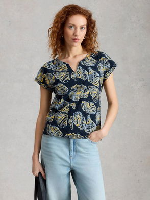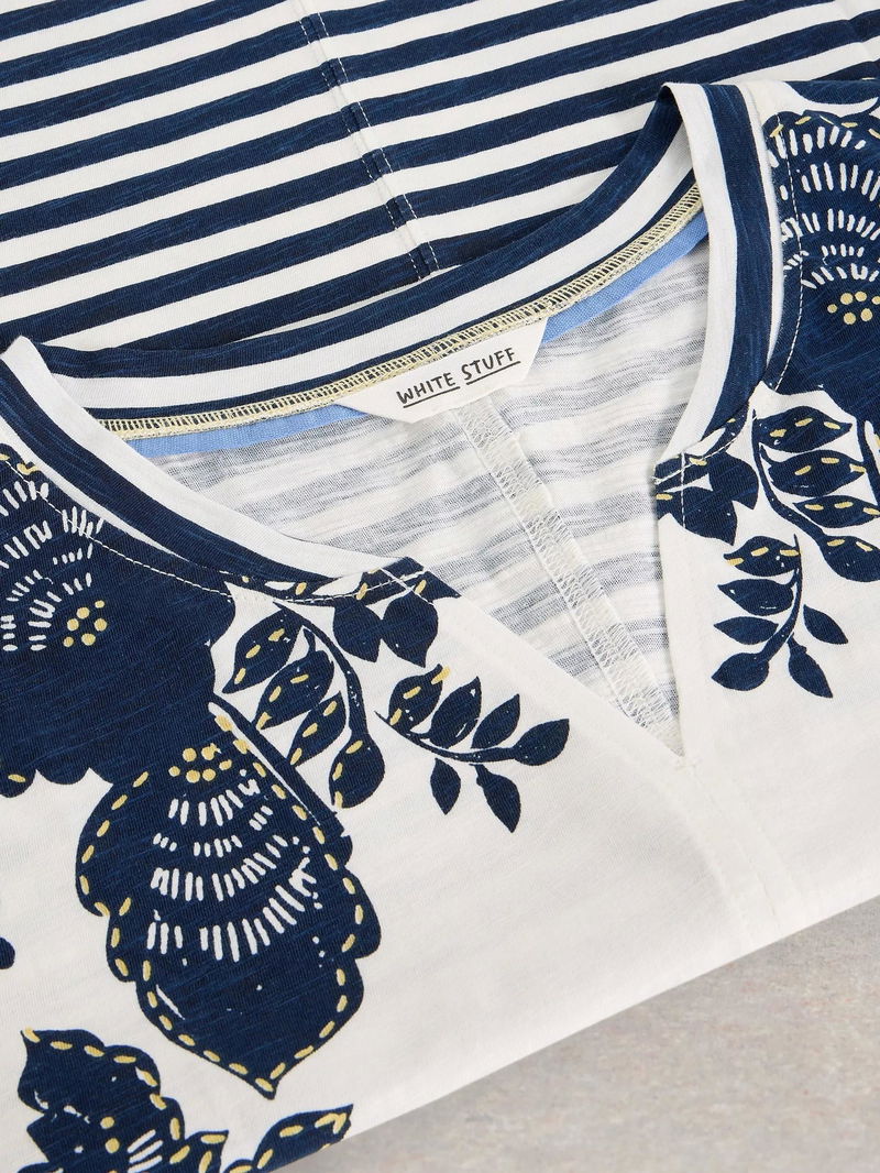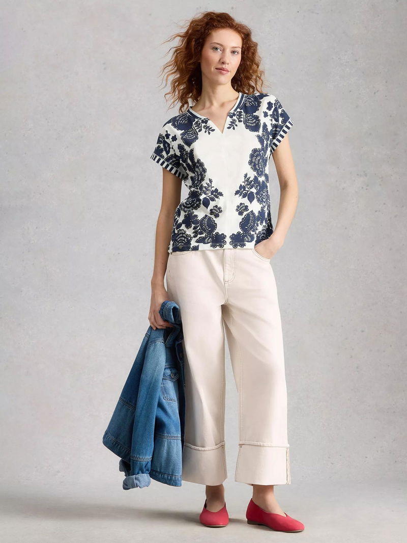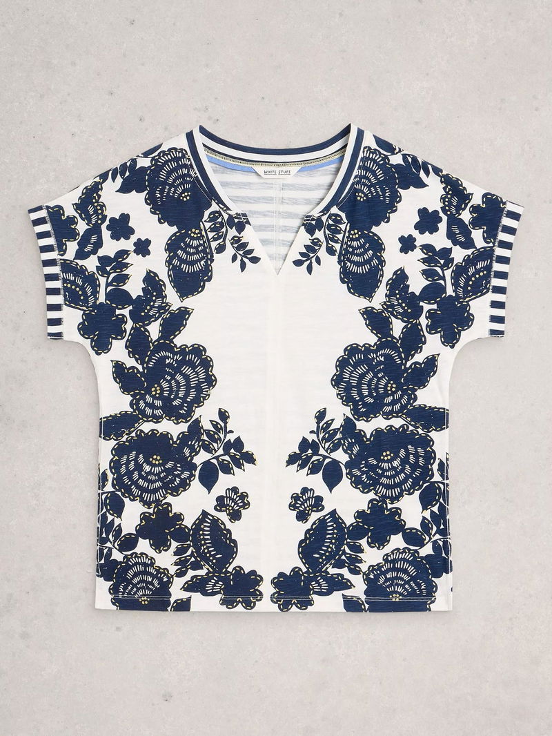 Nelly Notch Neck Floral T-Shirt, Navy/Multi