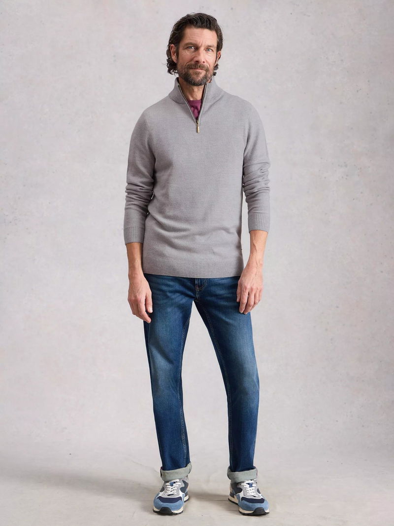 Newport Merino Wool Quarter-Zip Jumper, Light Grey