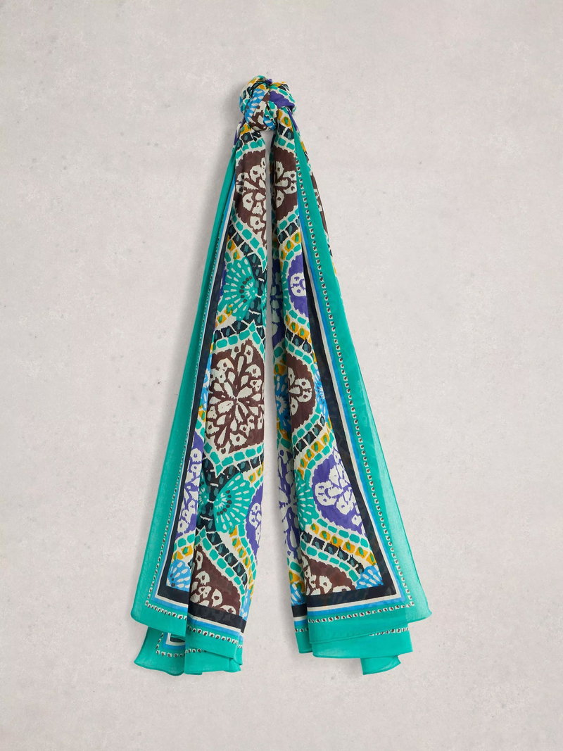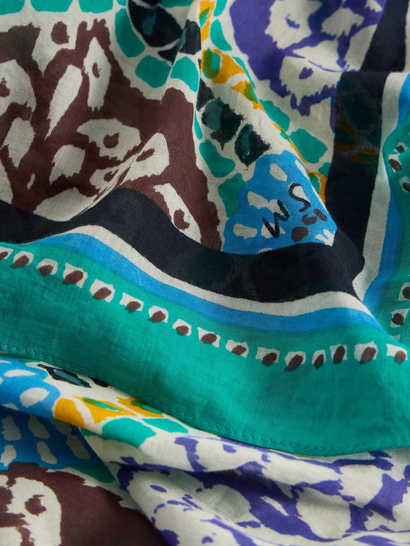 This soft 100% cotton scarf brings a lively abstract touch to your look, offering comfort against your skin and versatile layering for any occasion.