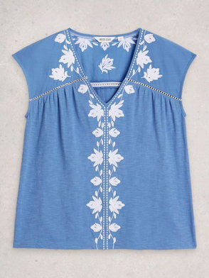 Peony Embroidered Top, Blue
