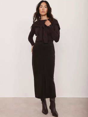 Quinn Floral Geometric Corduroy Midi Skirt, Black/Multi