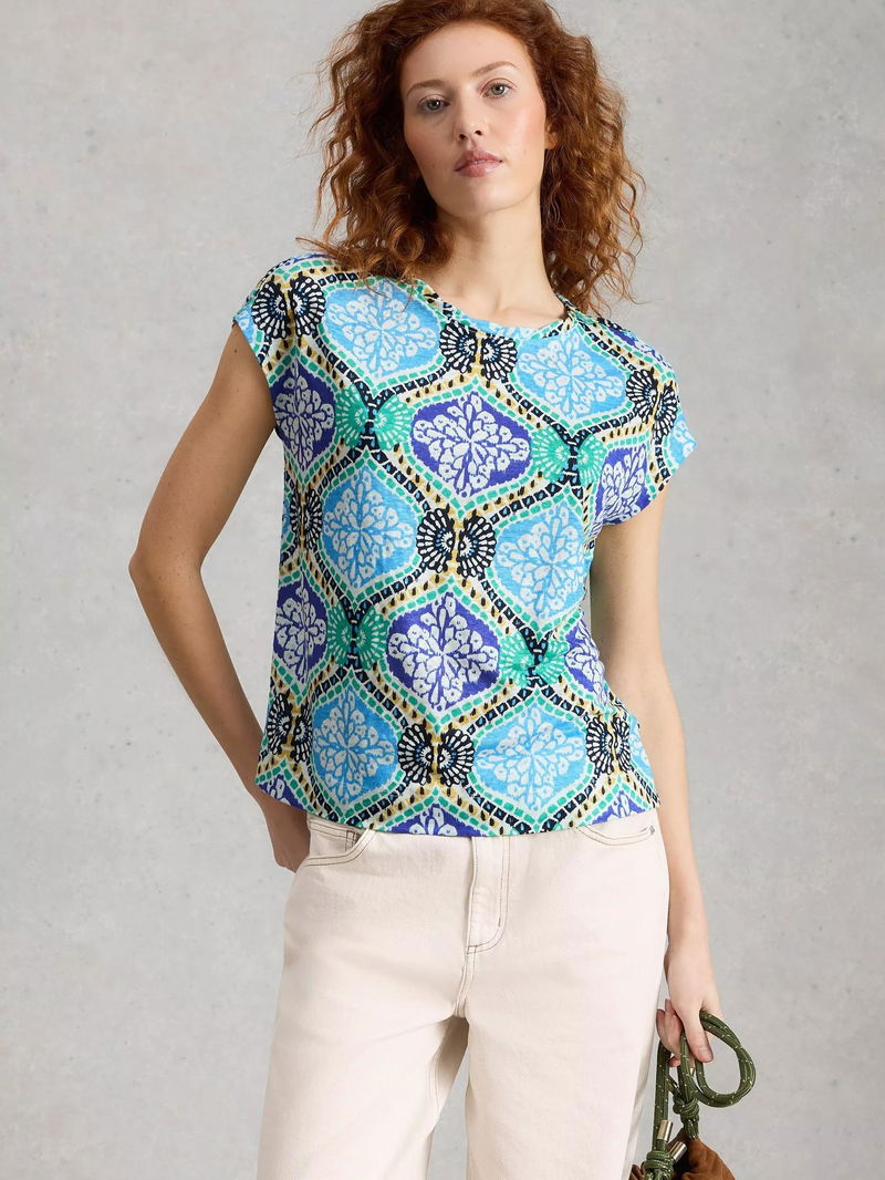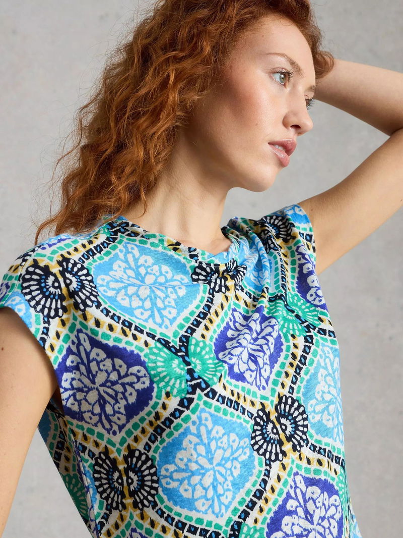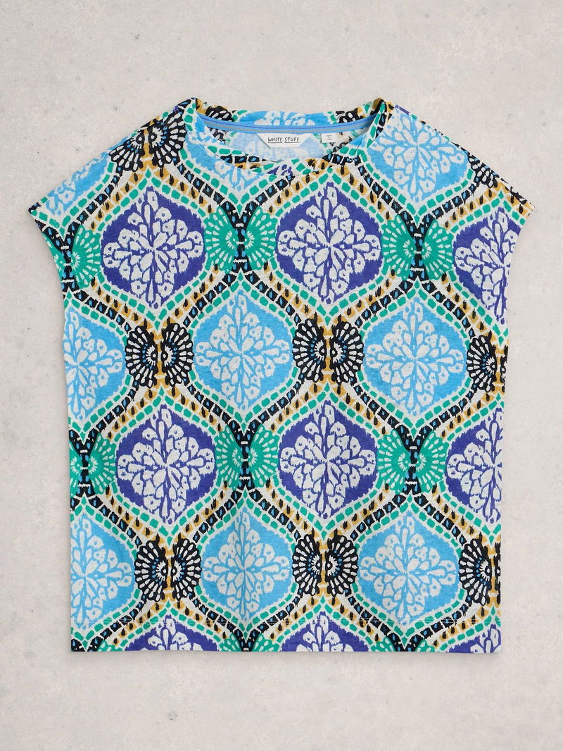 Rowan Abstract Linen T-Shirt, Blue/Multi