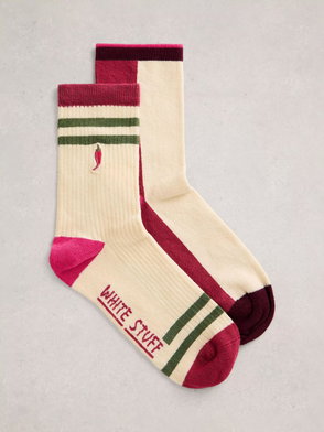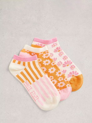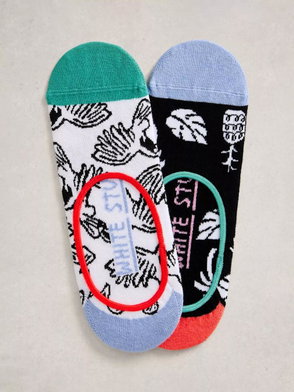 Sheep/Stripe Trainer Liner Socks, Pack Of 2, Grey/Multi