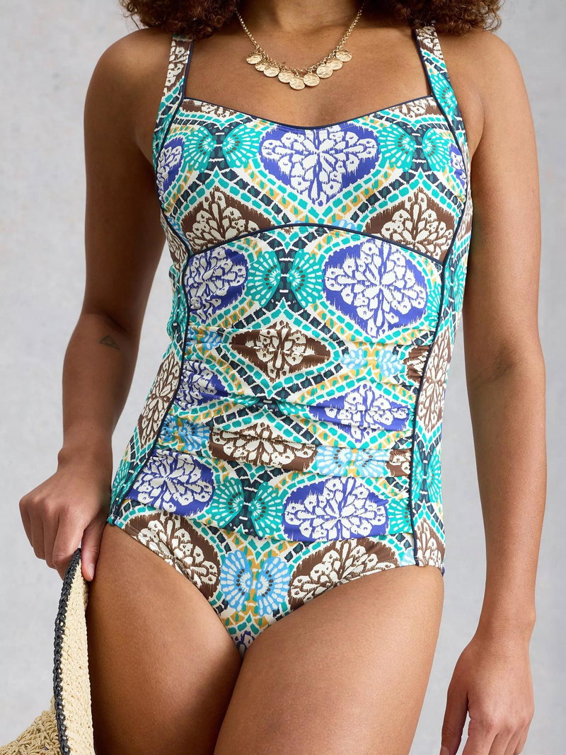 Feel confident in the pool with this swimsuit. The geometric pattern and sweetheart neck offer subtle style, while gentle stretch moves with you. Designed for comfort all day, whether you are swimming laps or relaxing by the water.