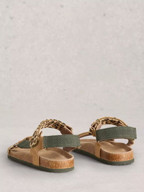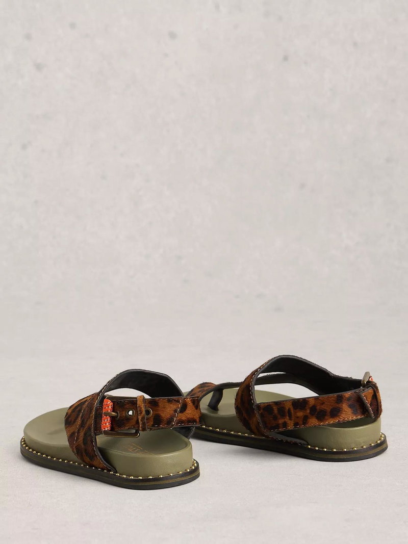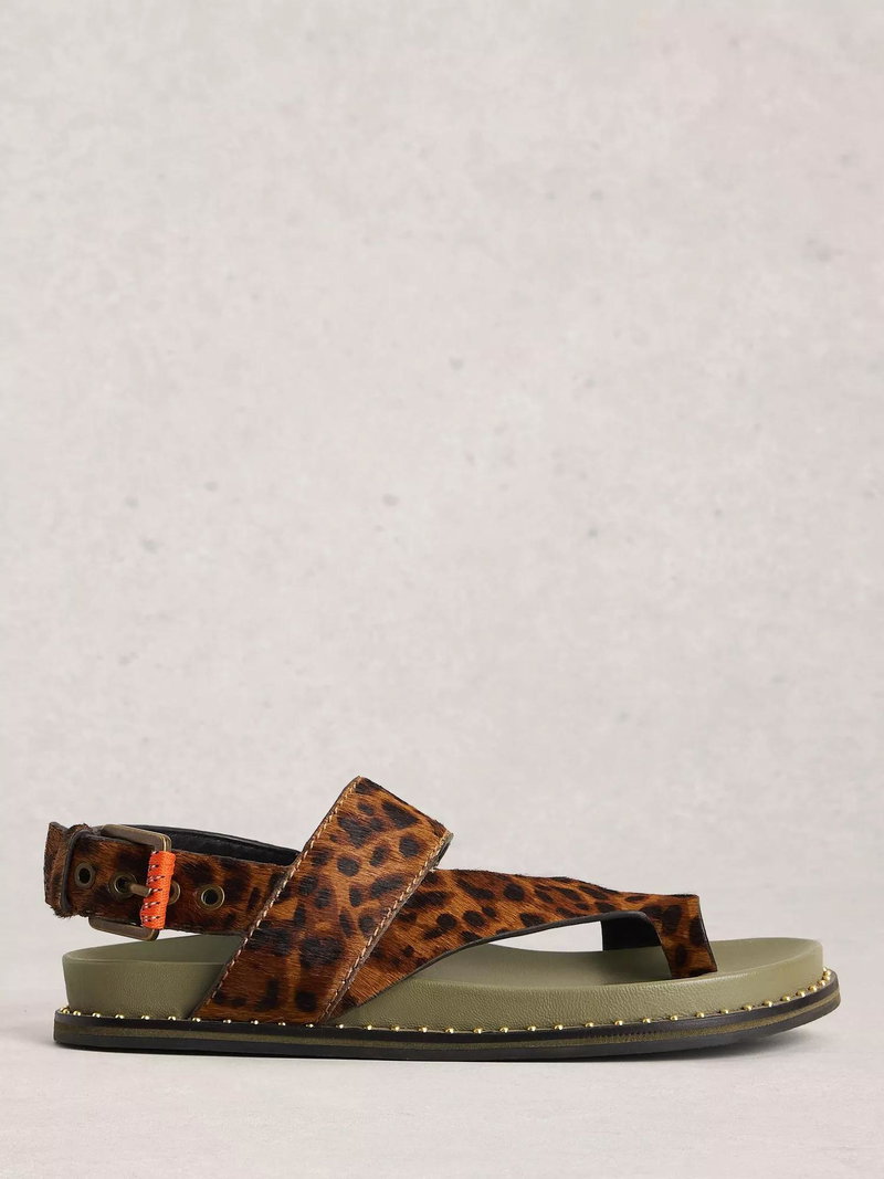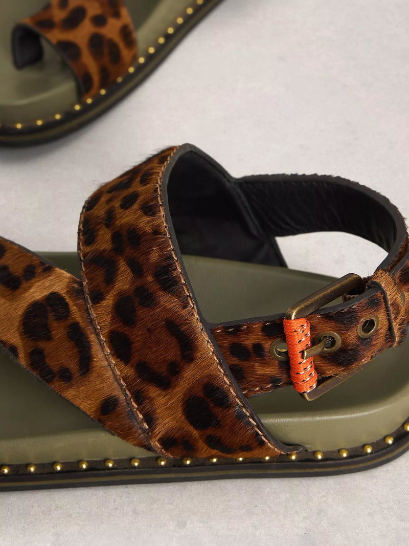 Taylor Leopard Print Leather Footbed Sandals, Brown/Multi