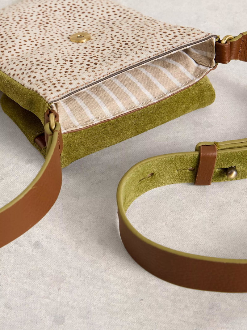 This suede crossbody mini bag is perfect for a phone and all the grab-and-go essentials. The flapover zip compartment keeps everything secure, while the back slip pocket keeps things within easy reach.