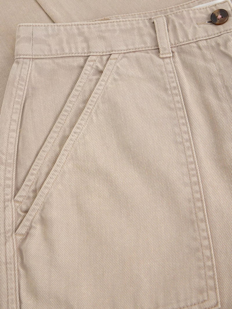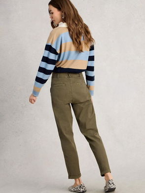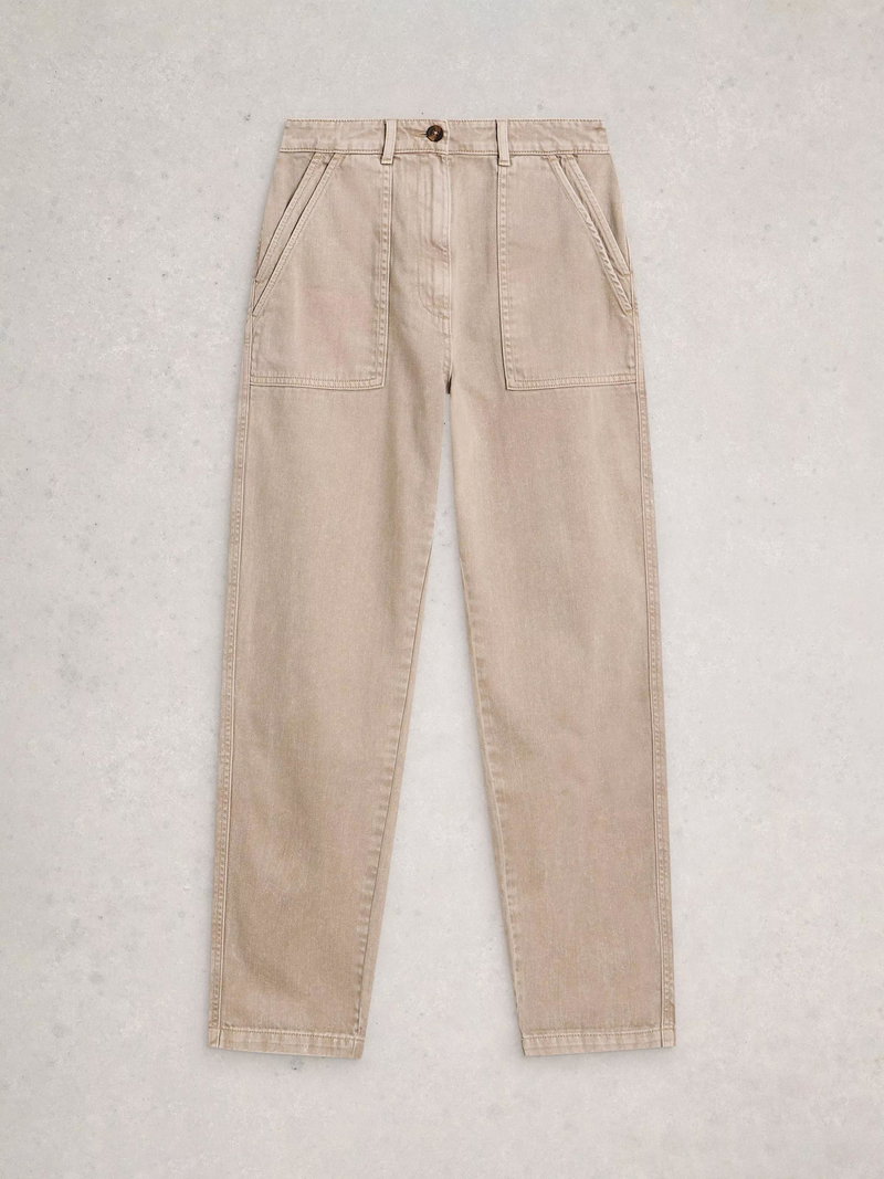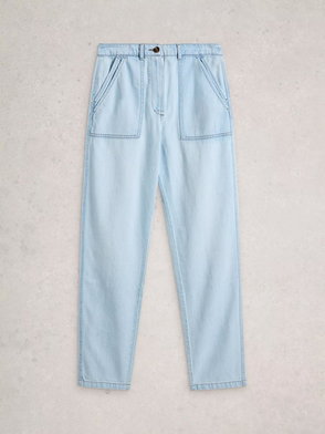 Made with 100% cotton denim, which makes them nice and soft. With a mid-rise fit that tapers at the ankle and a cool double pocket detail.