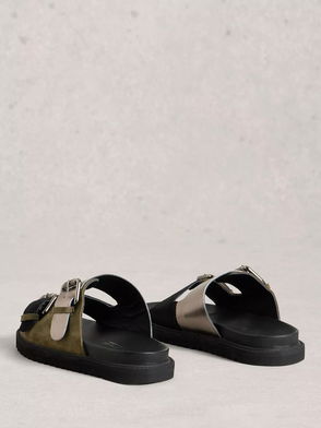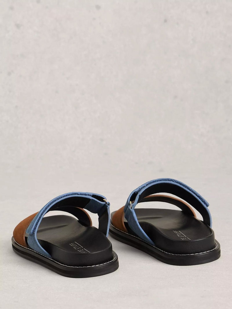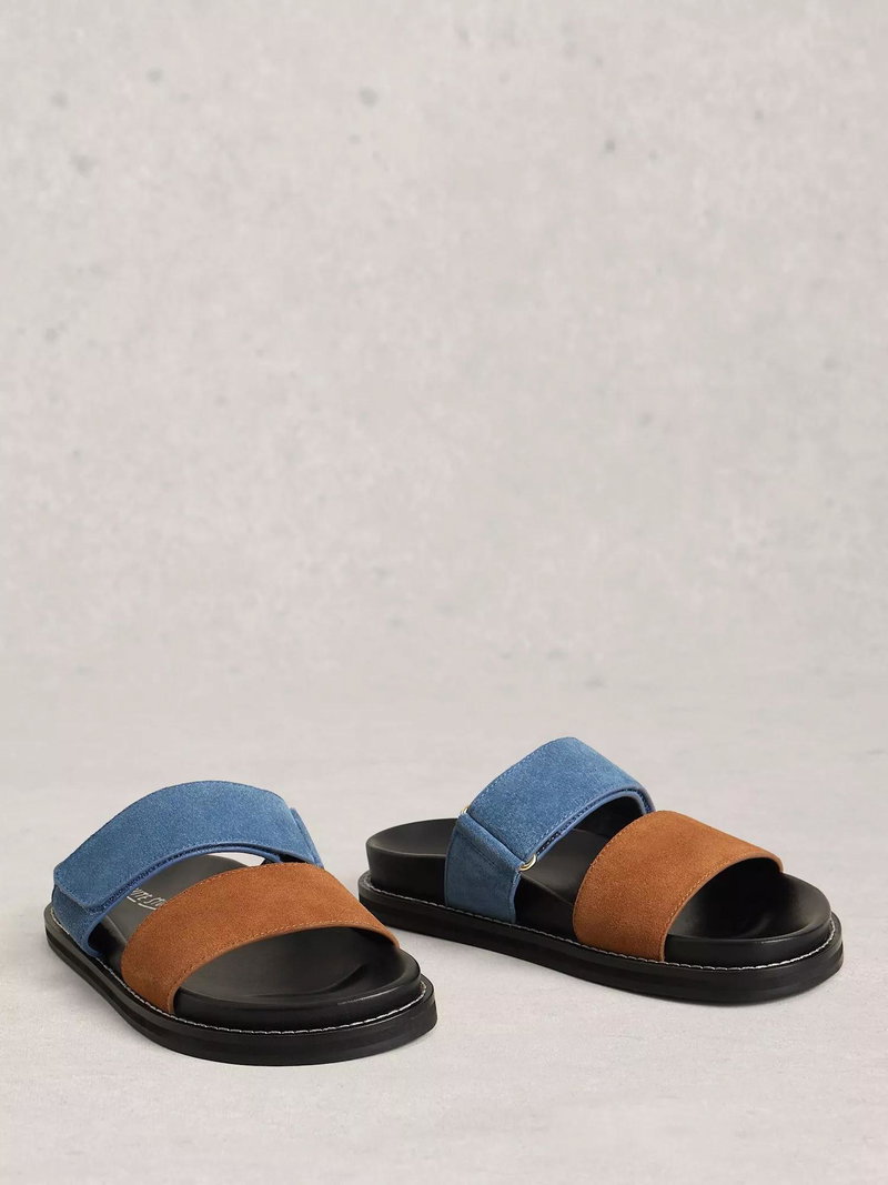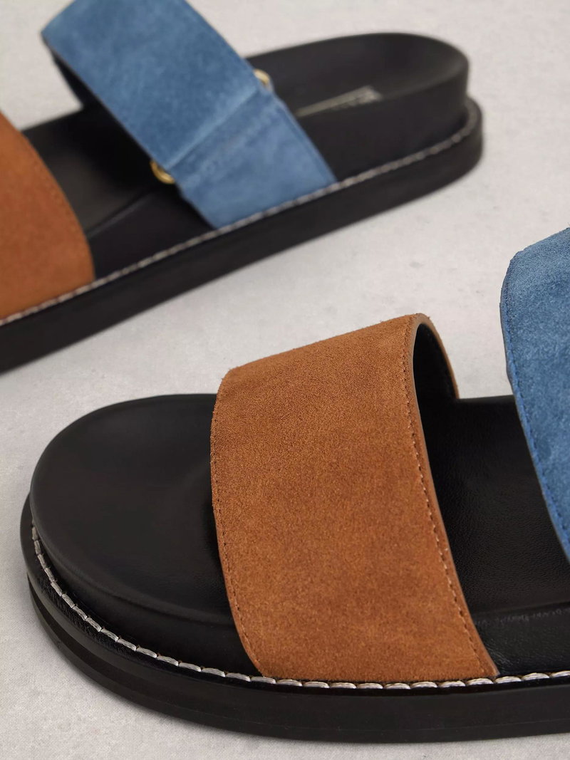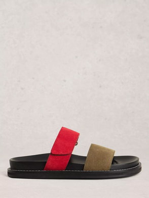 Double strap footbed mules by White Stuff in rich suede with a soft leather lining, featuring an open toe and slip-on design.