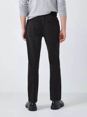 Mid-rise fit, barrel-leg cut, belt loops, four pockets, twisted seams through legs, dropped crotch, faded finish