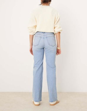 Flared on the bottom, the Eclipse jeans reveal a washed blue denim fabric.