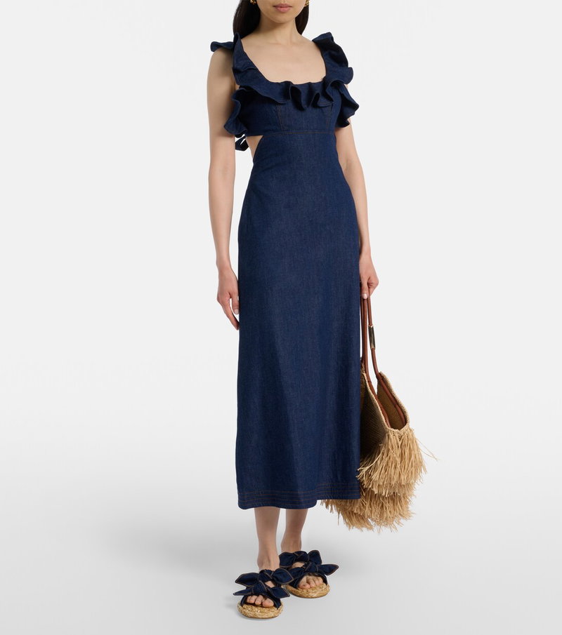 Aster Ruffled Denim Midi Dress