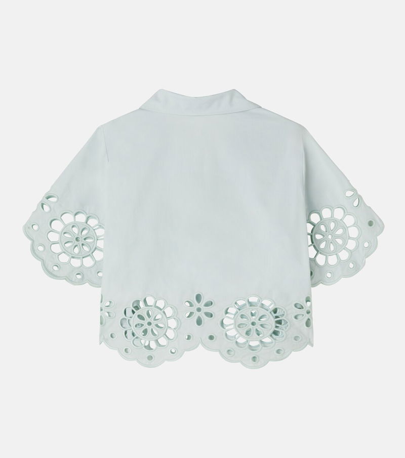 Awaken Embroidered Scalloped Cotton Shirt