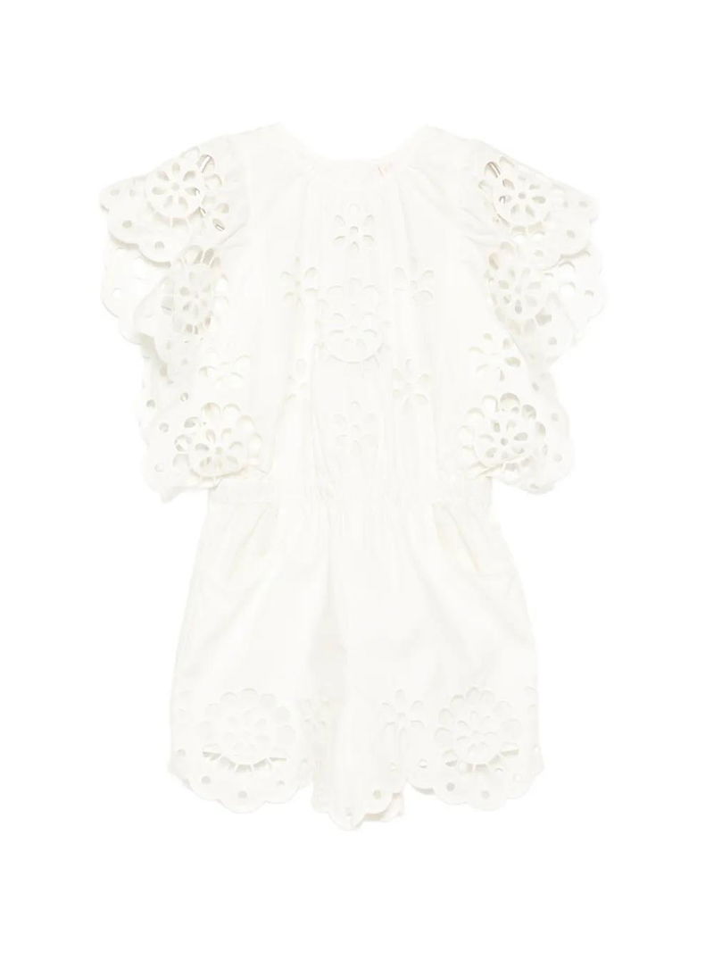Ivory floral detail rear button fastening elasticated waist two side slash pockets.