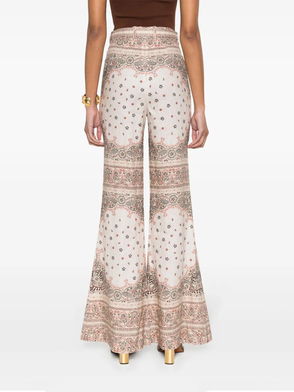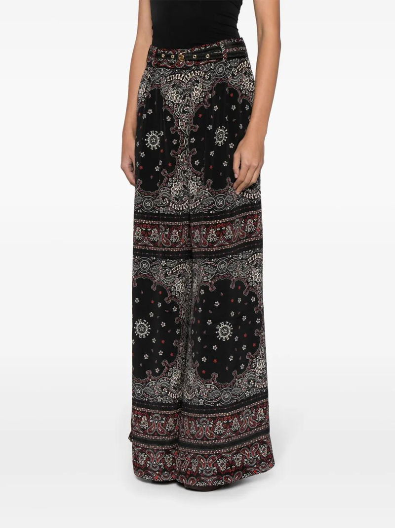 Black/multicolour bandana print pleat detailing high waist belt loops detachable waist belt hook and zip fly fastening two side slash pockets wide leg.