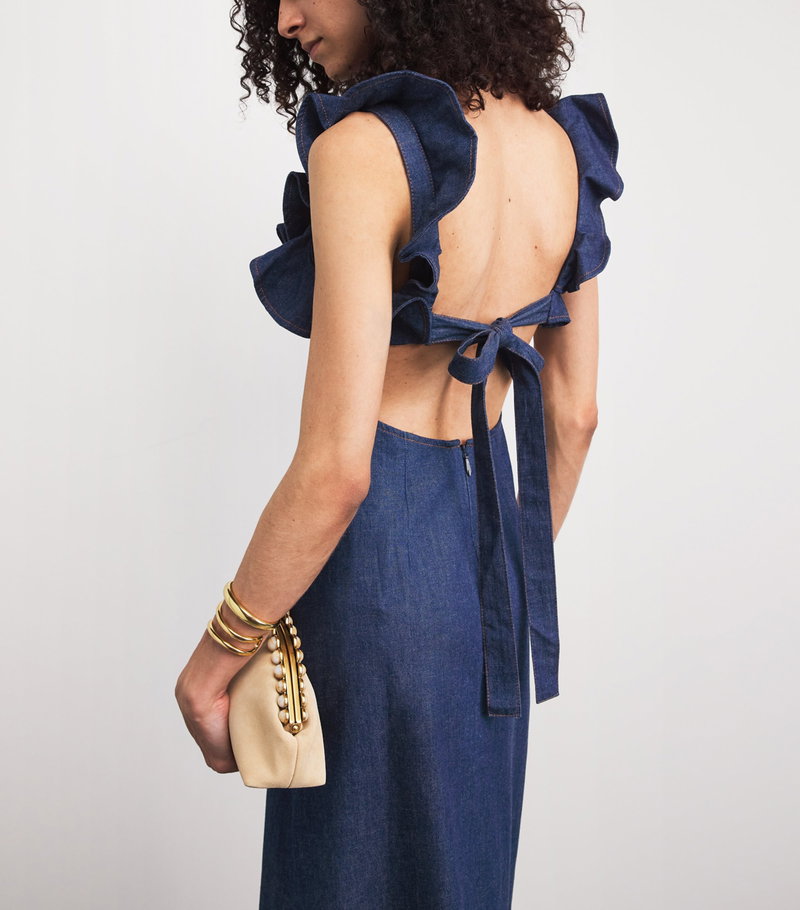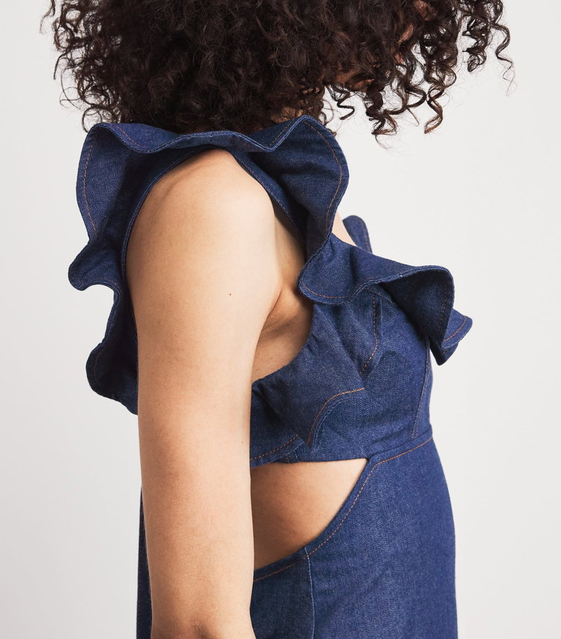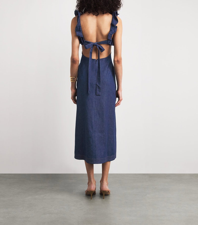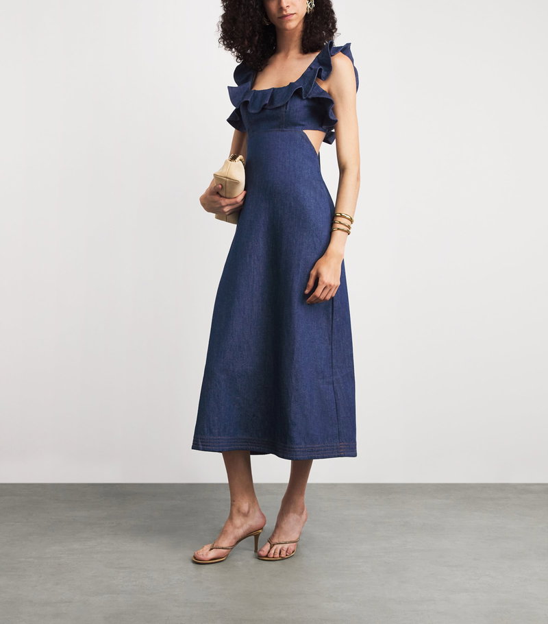 Denim Frilled Aster Midi Dress
