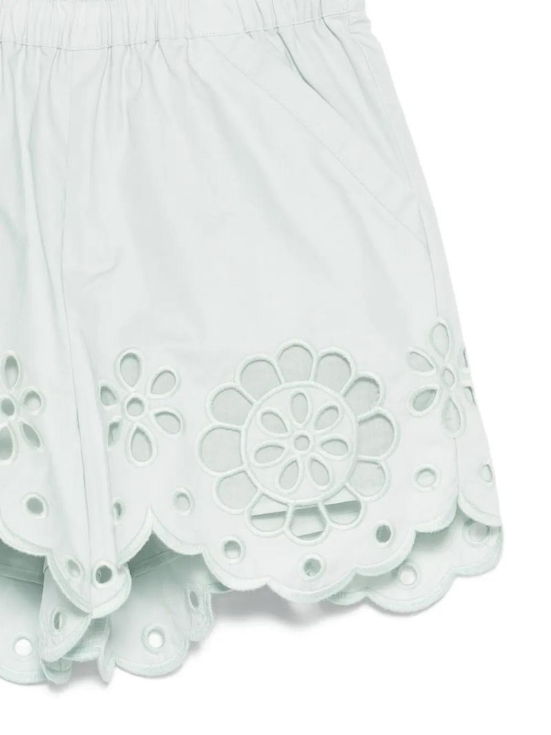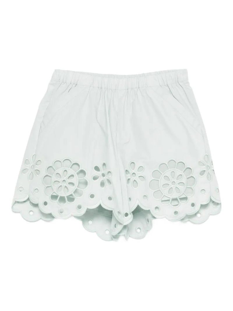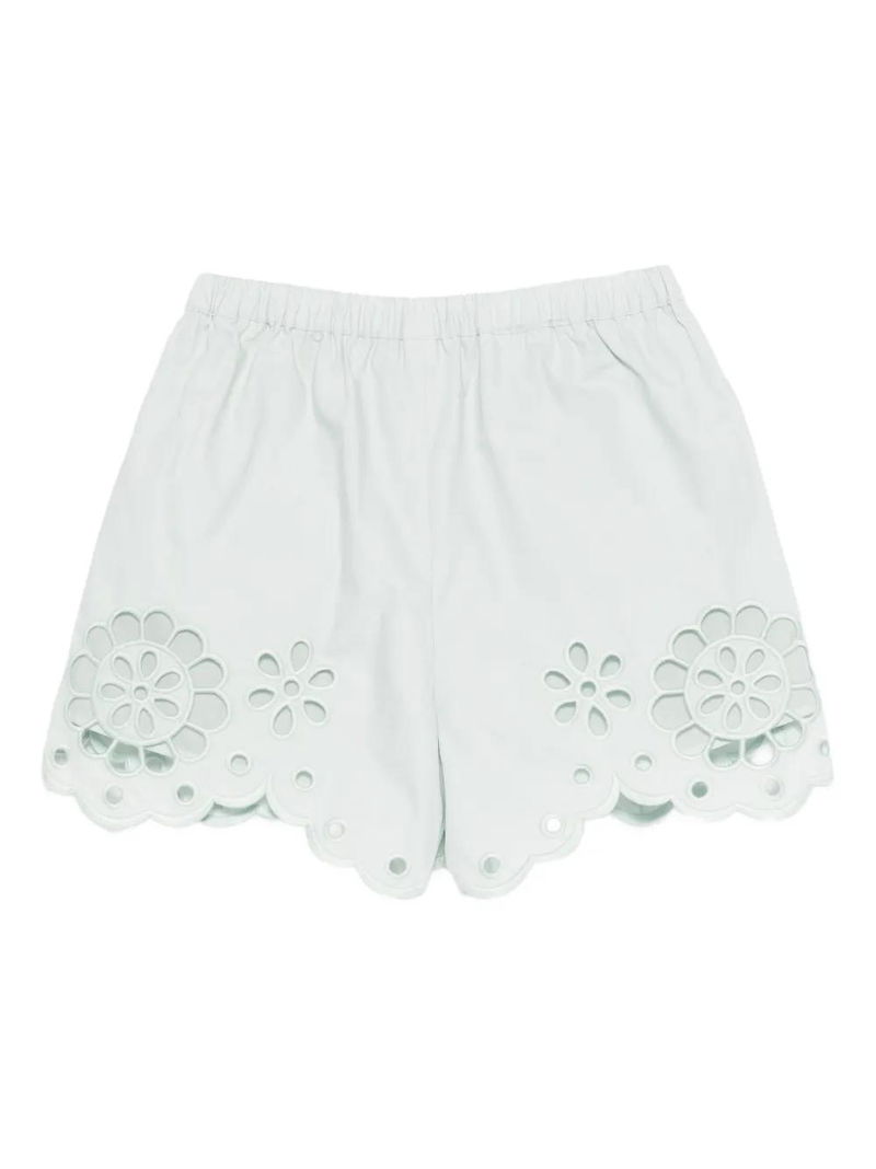 Pale green, floral-applique, scalloped edge, elasticated waistband.