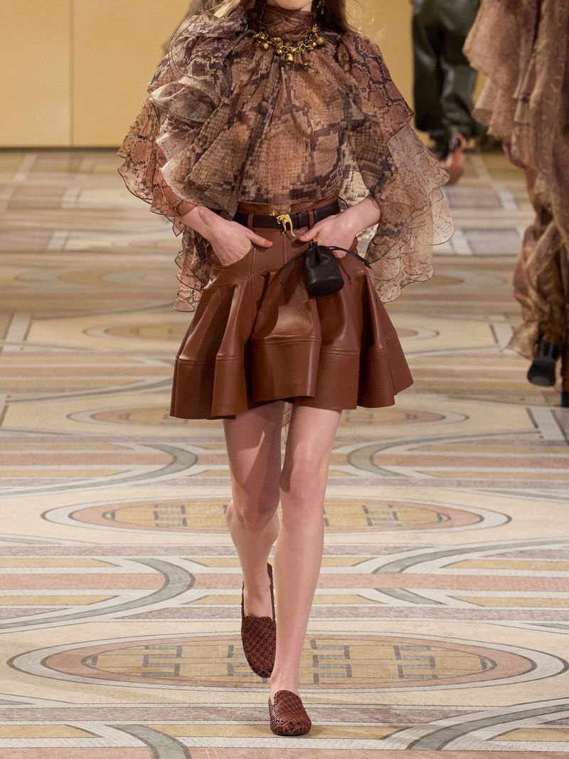 The whimsy and mysterious spirit of the Australian cult classic film Picnic at Hanging Rock informs Zimmermann's Fall '25 collection. Seen on the runway, this 'Hypnotic' skirt is made from soft leather with a figure-defining high waist and falls to a voluminous softly pleated hem. Wear yours with a tucked-in blouse.