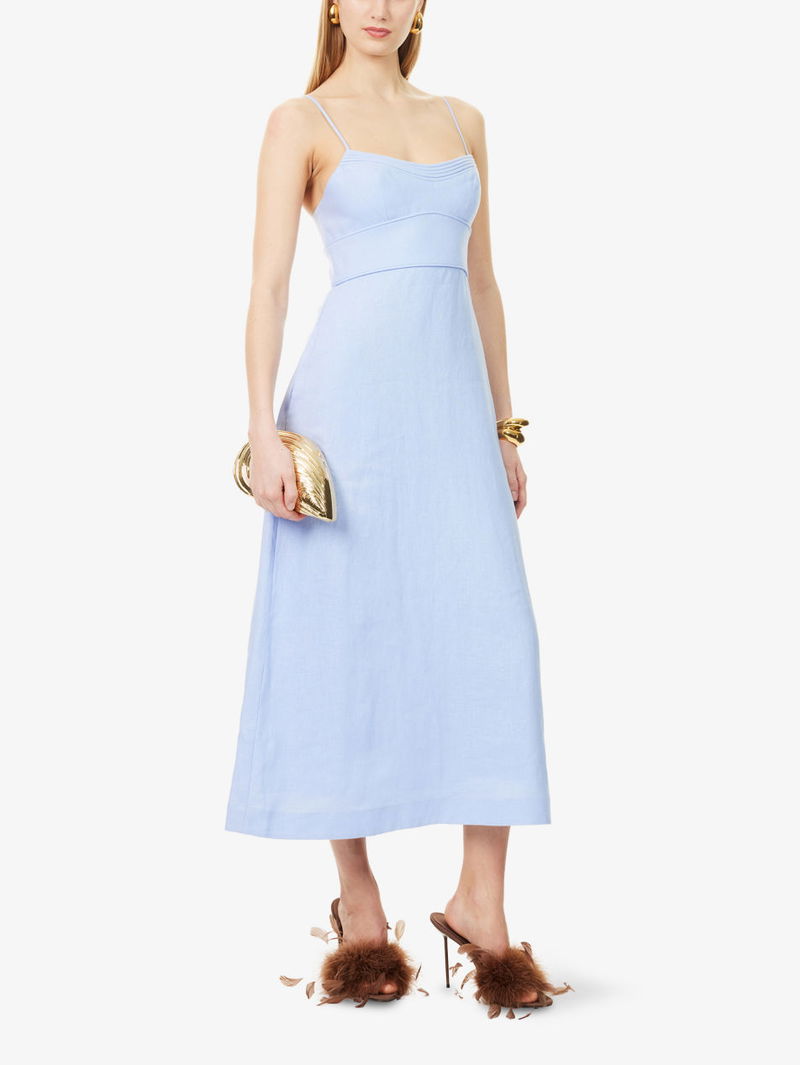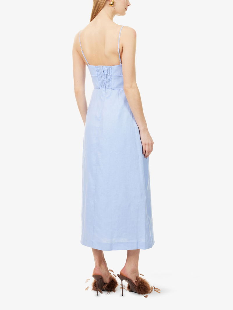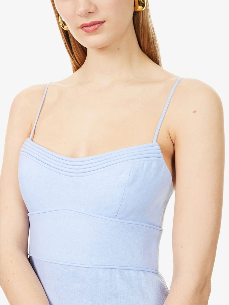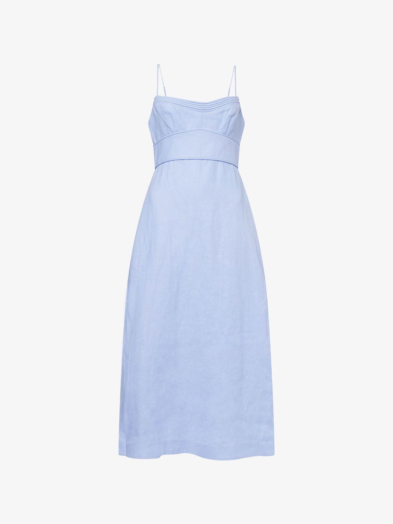 Sweetheart neckline, adjustable shoulder straps, smocked back panel, cotton lining.
