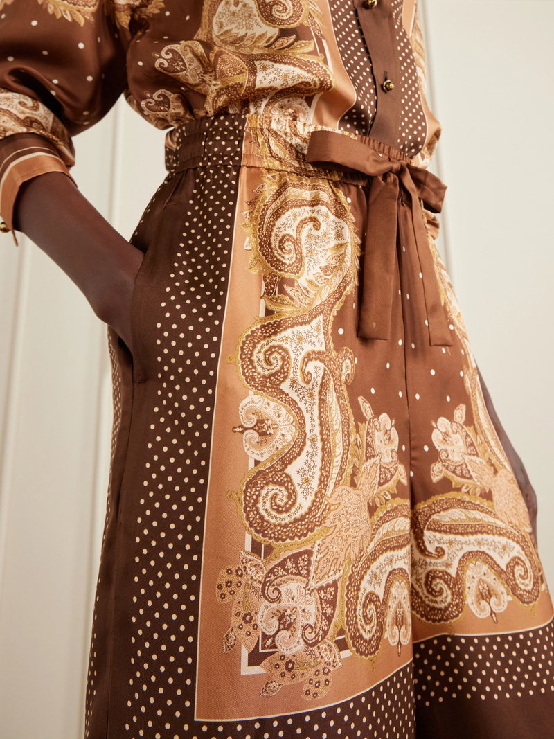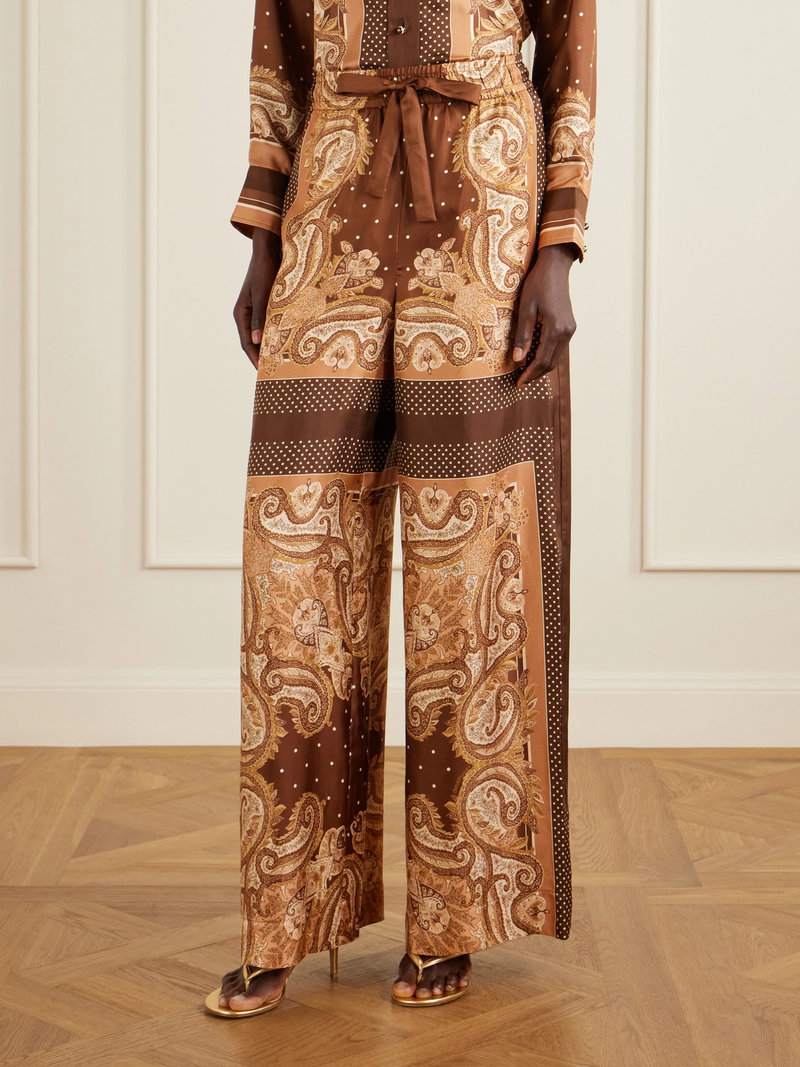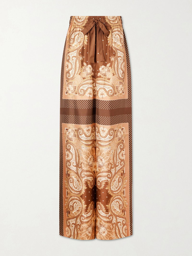 Zimmermann's 'Luna' pants are a signature style, defined by a flowing silhouette and colorful print. Cut from silk twill, they're designed in a straight-leg profile and have an elasticated waist fastened with a ribbon.