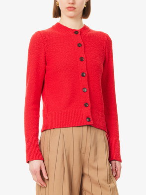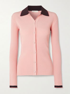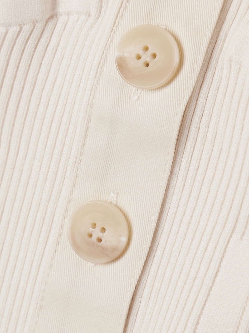 Zimmermann's off-the-shoulder cardigan is part of a set with the matching skirt. It's ribbed-knitted for a close fit and has coordinating cotton trims. Accessorize with a delicate pendant.