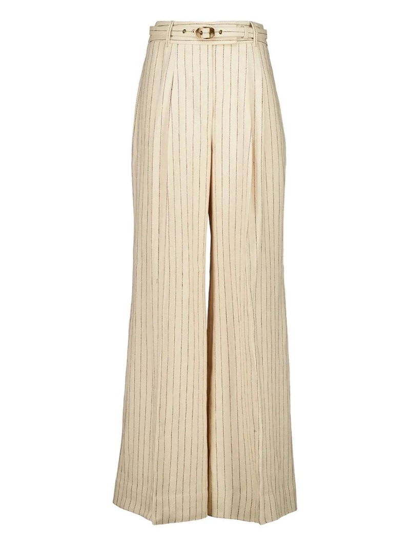 Pinstripe Belted Trousers.
