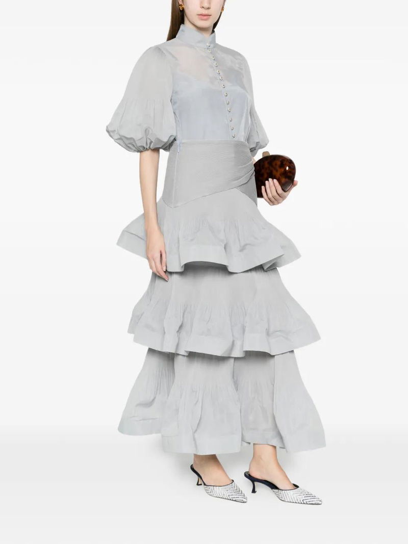 Light blue tiered design gathered detail.