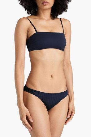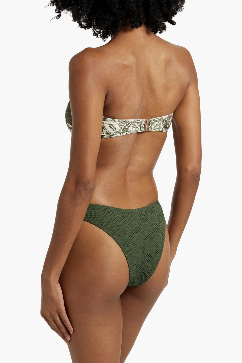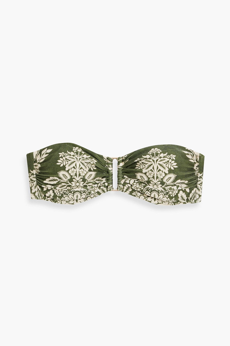 Bandeau swimsuit, Printed, Stretch-polyamide, Ring embellishment, Clasp fastening at back.