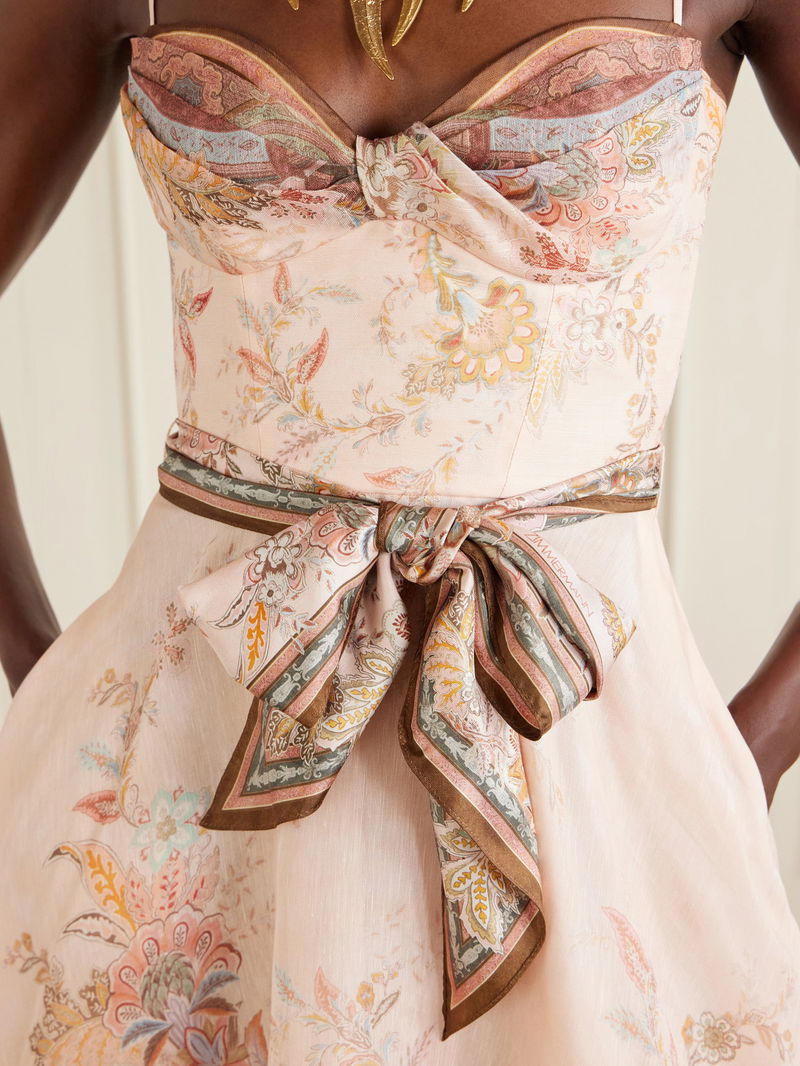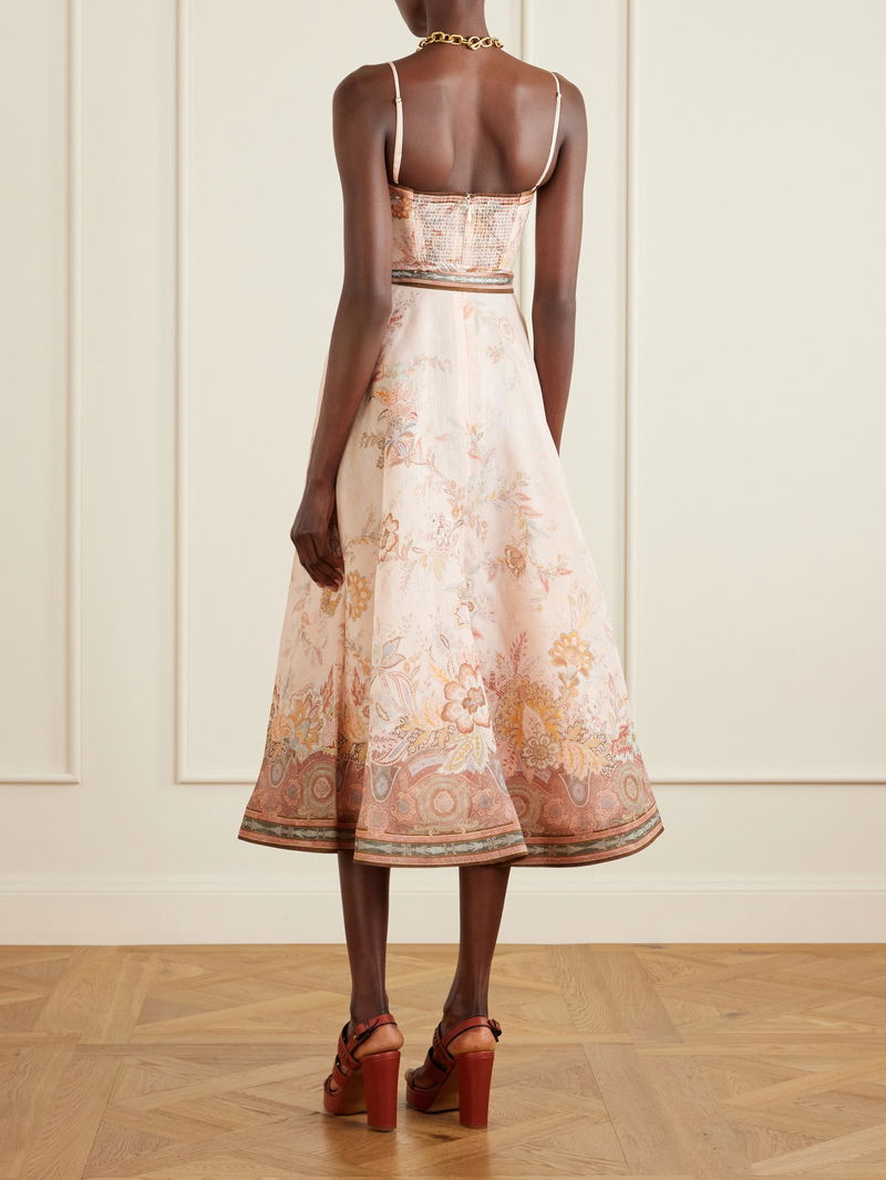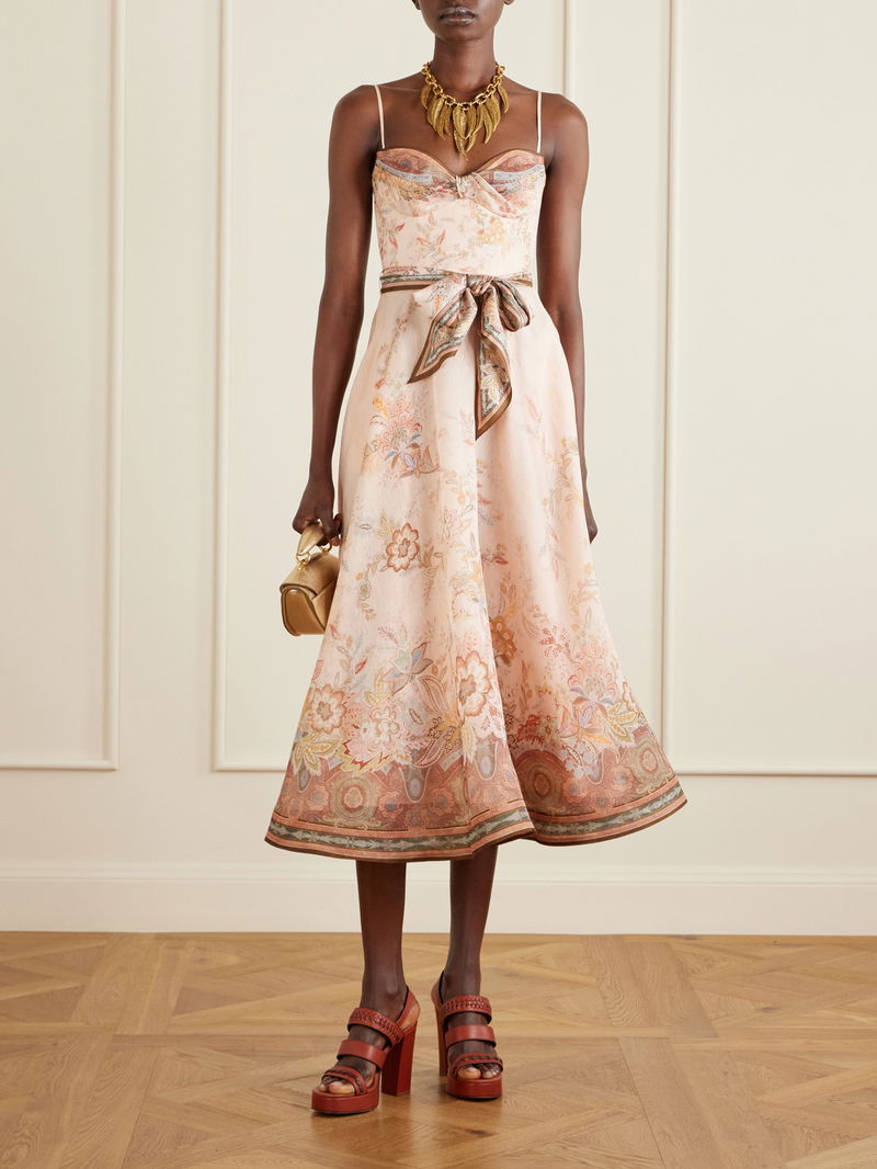 Zimmermann’s dress is crafted from a lightweight blend of silk and linen and printed with delicate florals. Designed with slim straps and a softly structured bodice, it falls to a gently flared skirt that moves beautifully. Style yours with sandals or heels.