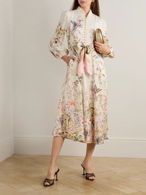 Zimmermann's 'Rebellion' dress is defined by the whimsical mermaids that decorate the skirt. Cut from certified linen and silk-blend that's gathered and pleated, it has a corsetry-inspired bodice with lace details and delicate bead embellishments. Pair it with strappy sandals and metallic accessories.
