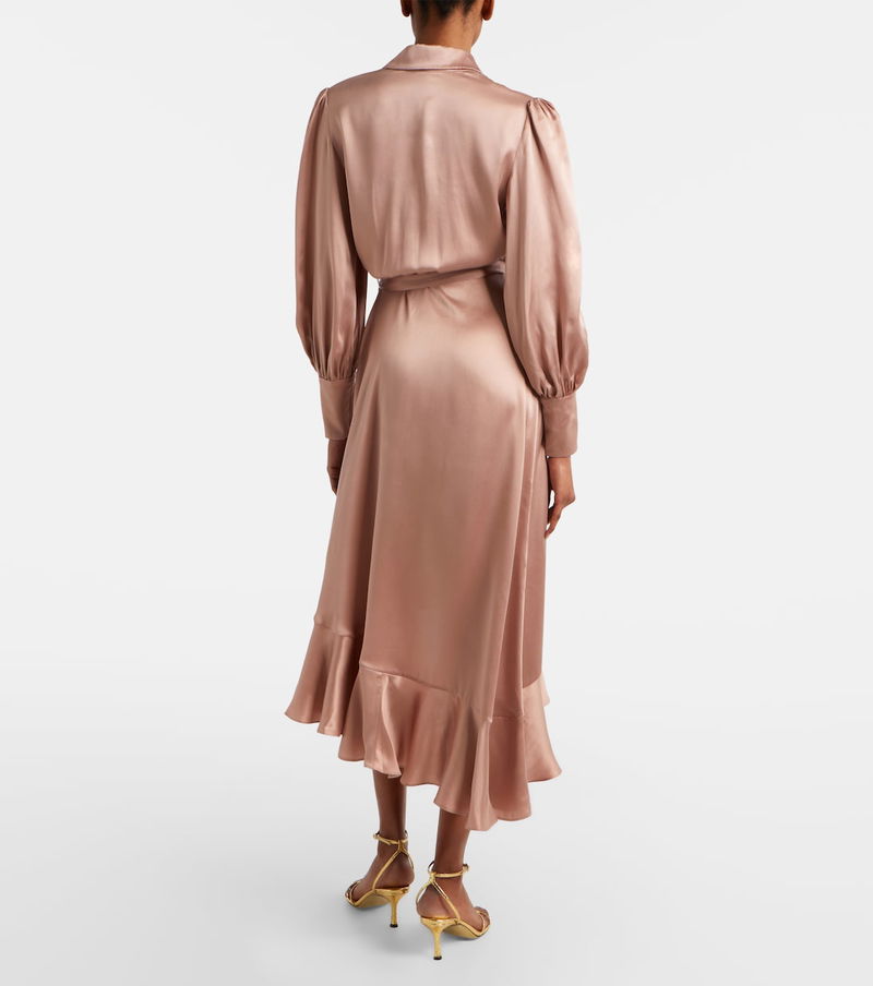 Ruffled Silk Satin Wrap Dress